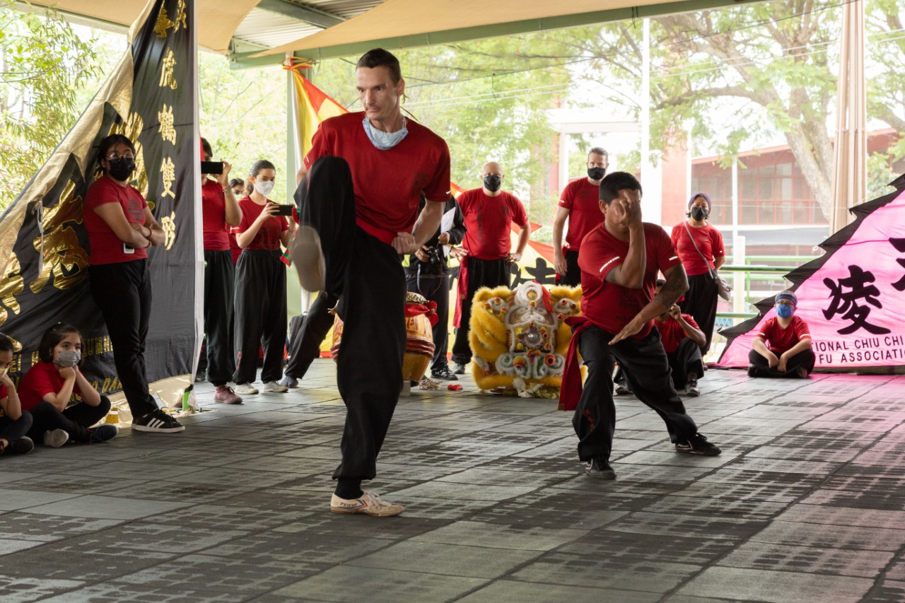 Acompañado de los sifus, Luis Alfonso Quispe Rojas y José Jaime Fabián Agamas, Chin Ling compartió su experiencia en la práctica del Kung Fu, arte que le ha permitido desarrollarse en otros espacios artísticos, como son la producción televisiva y el cine.