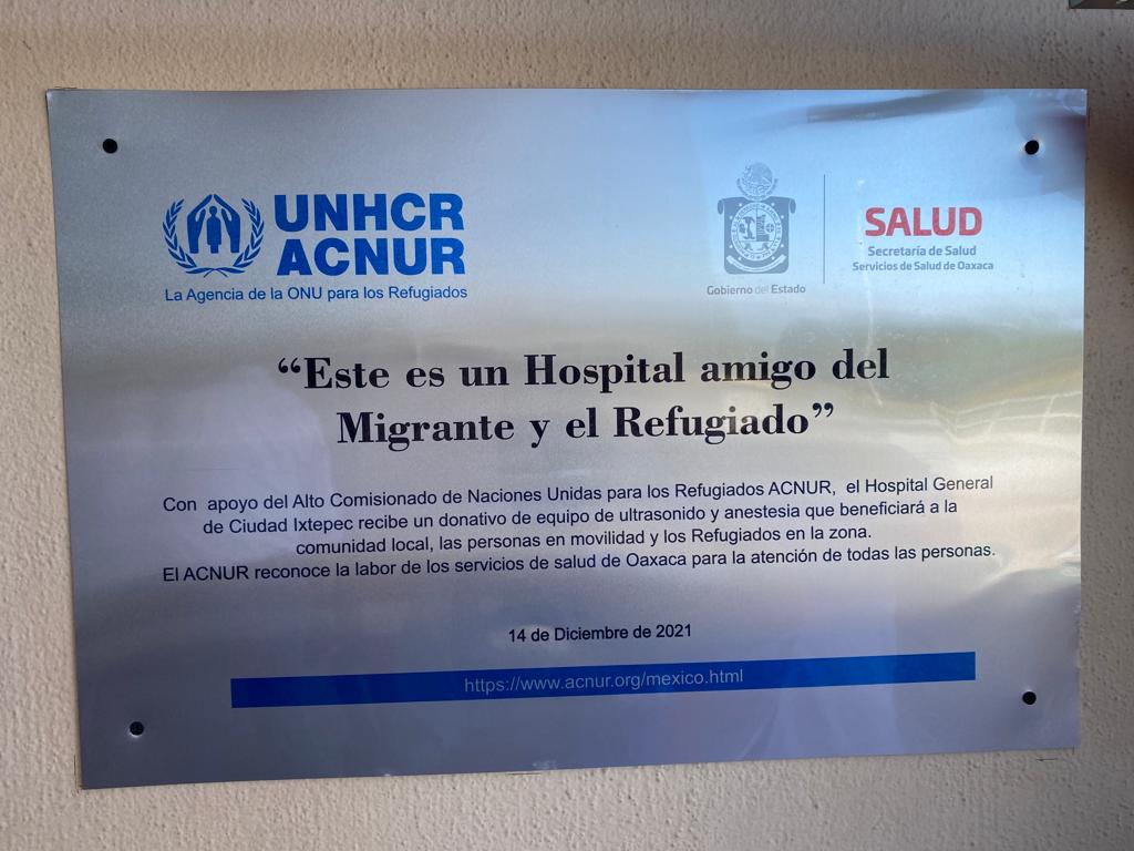 Dona ACNUR equipamiento médico a Hospital General de Ixtepec