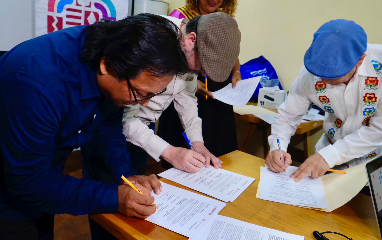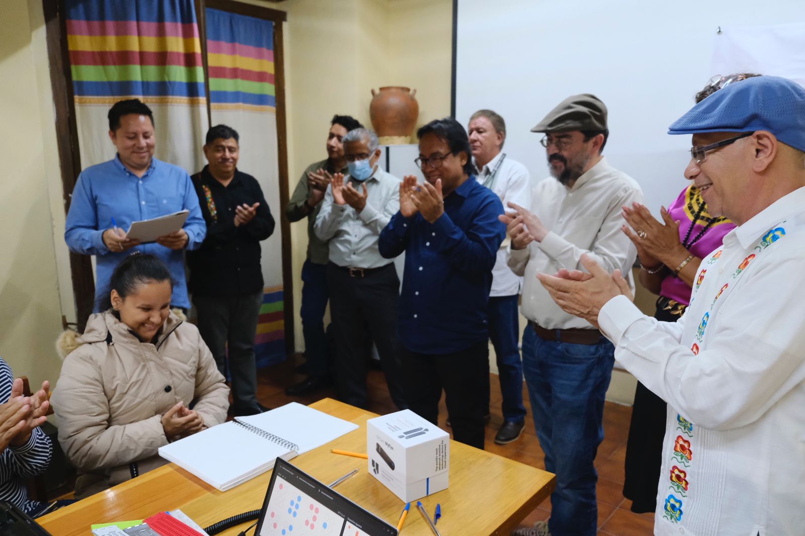 Oaxaca de Juárez, Oax. 25 de abril de 2023. El titular de la Secretaría de las Culturas y Artes, Víctor Cata, recibió del Gobierno de Israel la donación de un aparato OrCam MyEye para las y los usuarios ciegos y con debilidad visual que asisten a la Biblioteca Pública Central (BPC), ubicada en la Ciudad de Oaxaca.