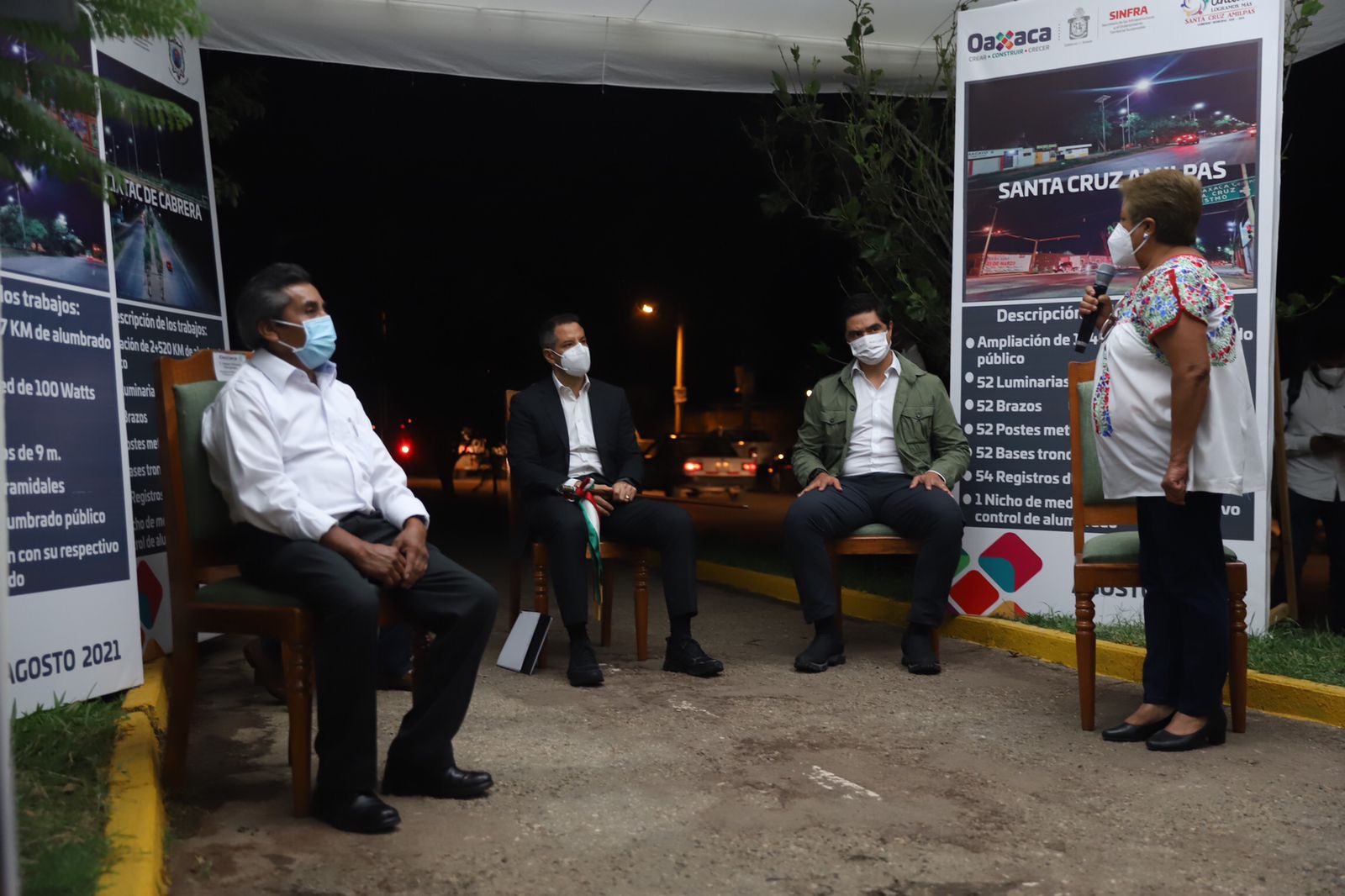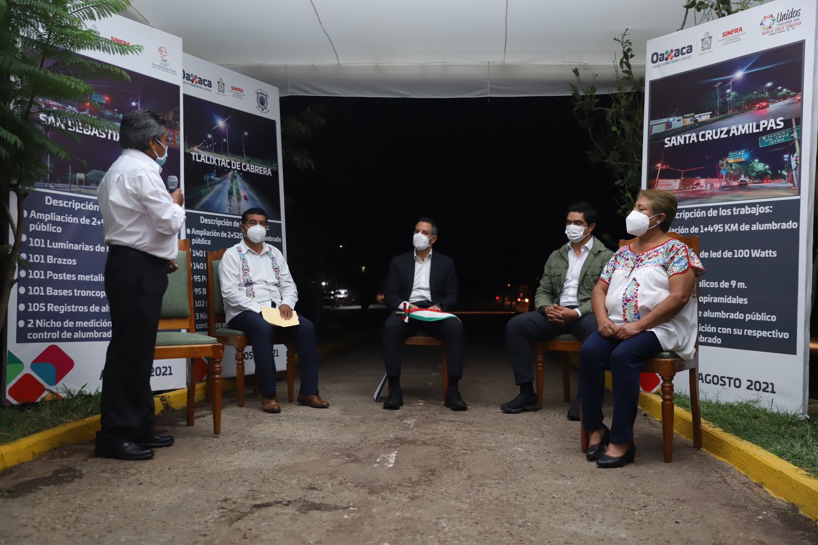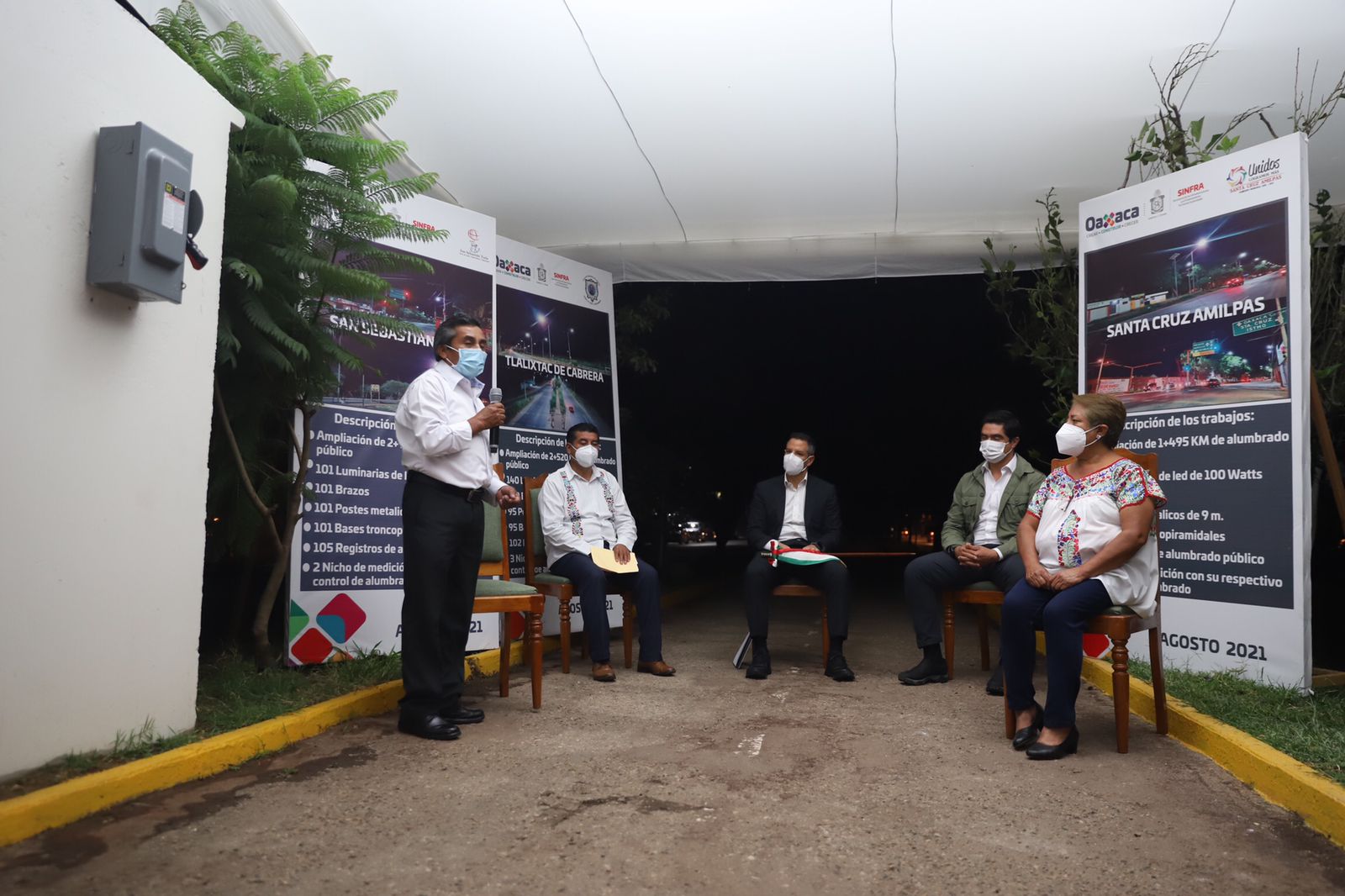Abundó que específicamente en los tres municipios donde se inauguraron las obras de manera simbólica –Santa Cruz Amilpas, San Sebastián Tutla y Tlalixtac de Cabrera- se beneficiaron a más de 42 mil habitantes, con la colocación de luminarias de led, brazos, postes, registros, cableado, entre otros.