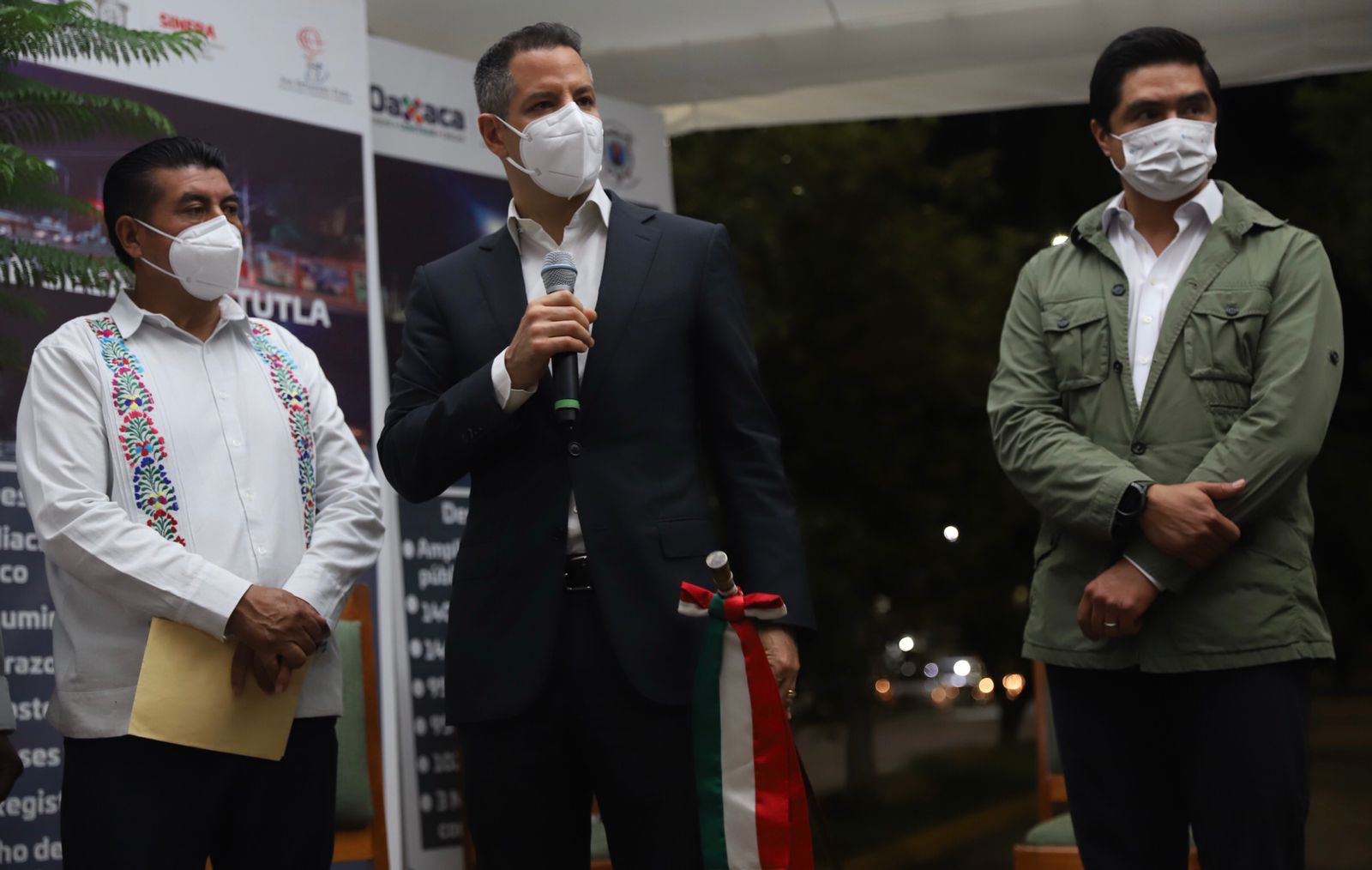 Oaxaca de Juárez, Oax. 24 de agosto de 2021. Desde hoy, 10 municipios de la zona metropolitana de Oaxaca de Juárez se beneficiaron con la modernización de la red de alumbrado público, acción impulsada por el Gobierno de Oaxaca en la que se invirtieron más de 54 millones de pesos, como parte del Fondo Metropolitano 2020.