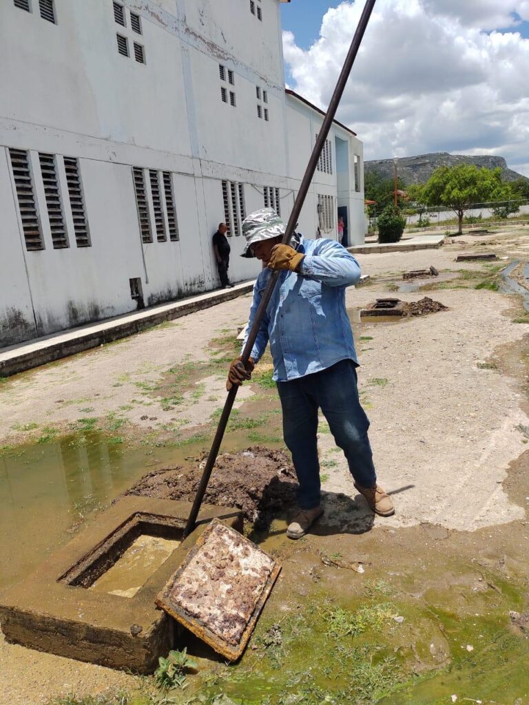 Las labores consistieron en la extracción de sedimentos, residuos sólidos y material acumulado que obstruía el sistema, con el objetivo de mejorar el flujo de aguas residuales y prevenir riesgos sanitarios dentro de las instalaciones.