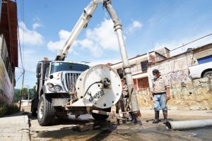 Con el apoyo de equipo tipo Vactor, el personal de la oficina de alcantarillado, realizó el desazolve de las atarjeas y pozos de visita, que componen el drenaje sanitario de esta Agencia, perteneciente a la ciudad capital.