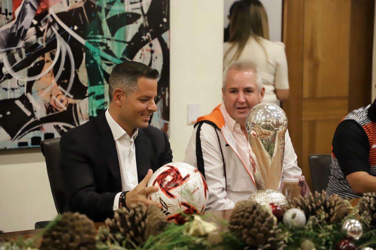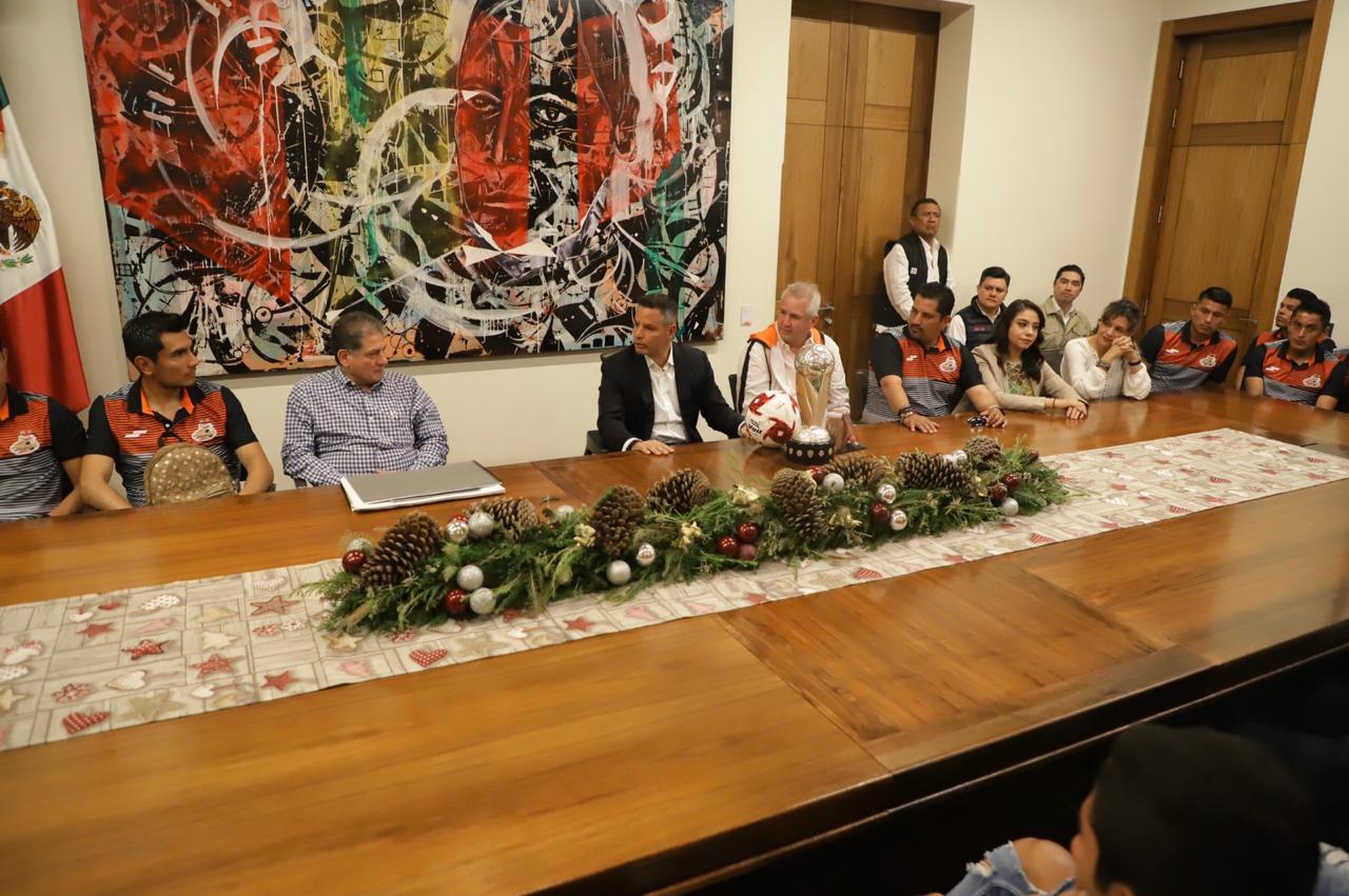 En una visita a Palacio de Gobierno, el equipo encabezado por el presidente de la institución Juan Carlos Jones y el director técnico, Alejandro Pérez, así como jugadores, compartieron con el Mandatario Estatal su felicidad por haber alcanzado el medio boleto para ascender a la liga MX.