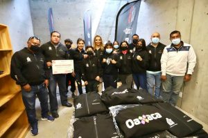 En este acto, que contó con la presencia de la presidenta honoraria del Sistema DIF Oaxaca, Ivette Morán de Murat, y el director general de este organismo asistencial, Christian Holm Rodríguez, el equipo estatal de surf también fue beneficiado con tablas para continuar con el desarrollo de este deporte; y representantes de los Juegos Nacionales Populares, recibieron uniformes oficiales de la selección estatal.