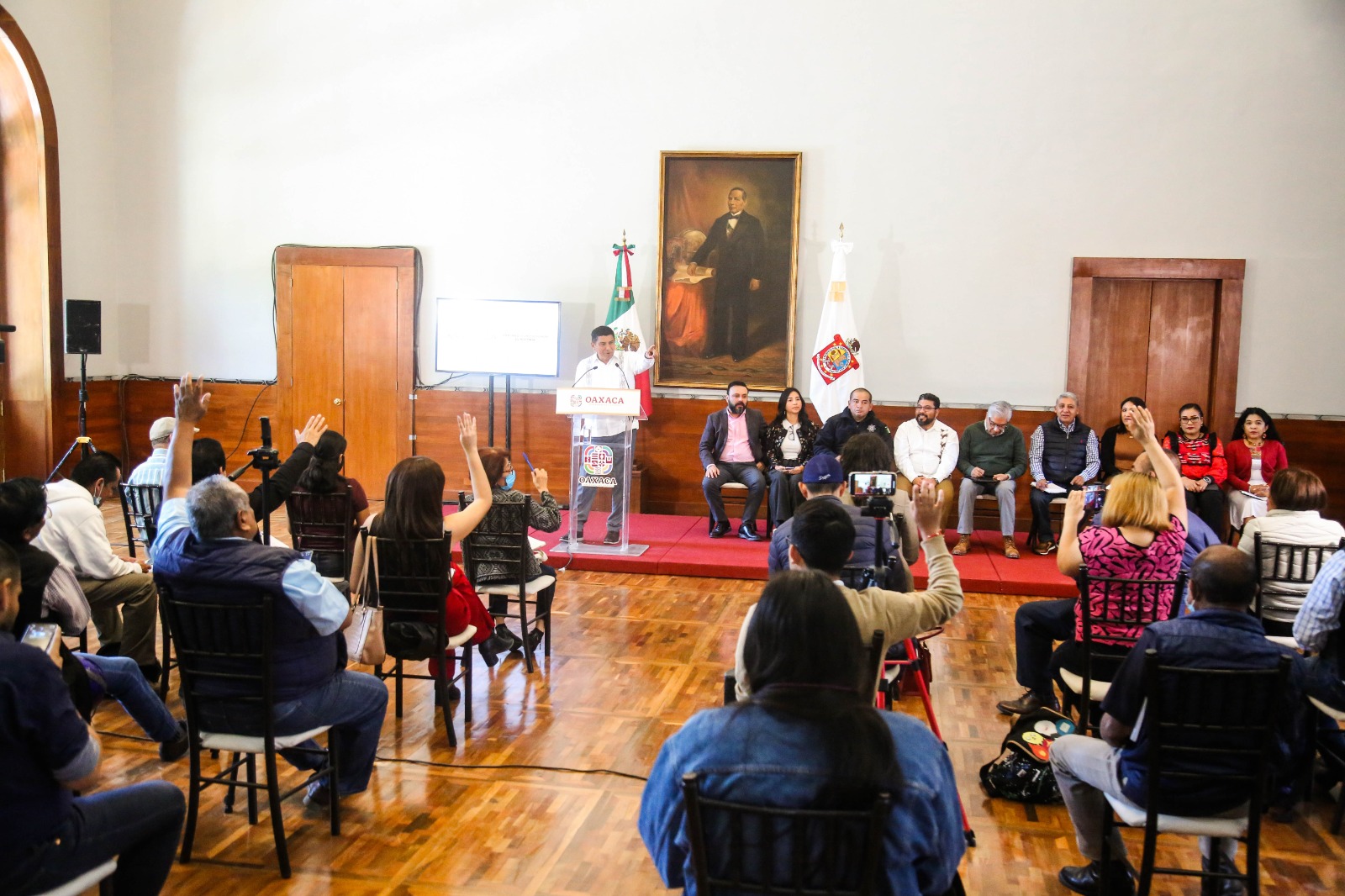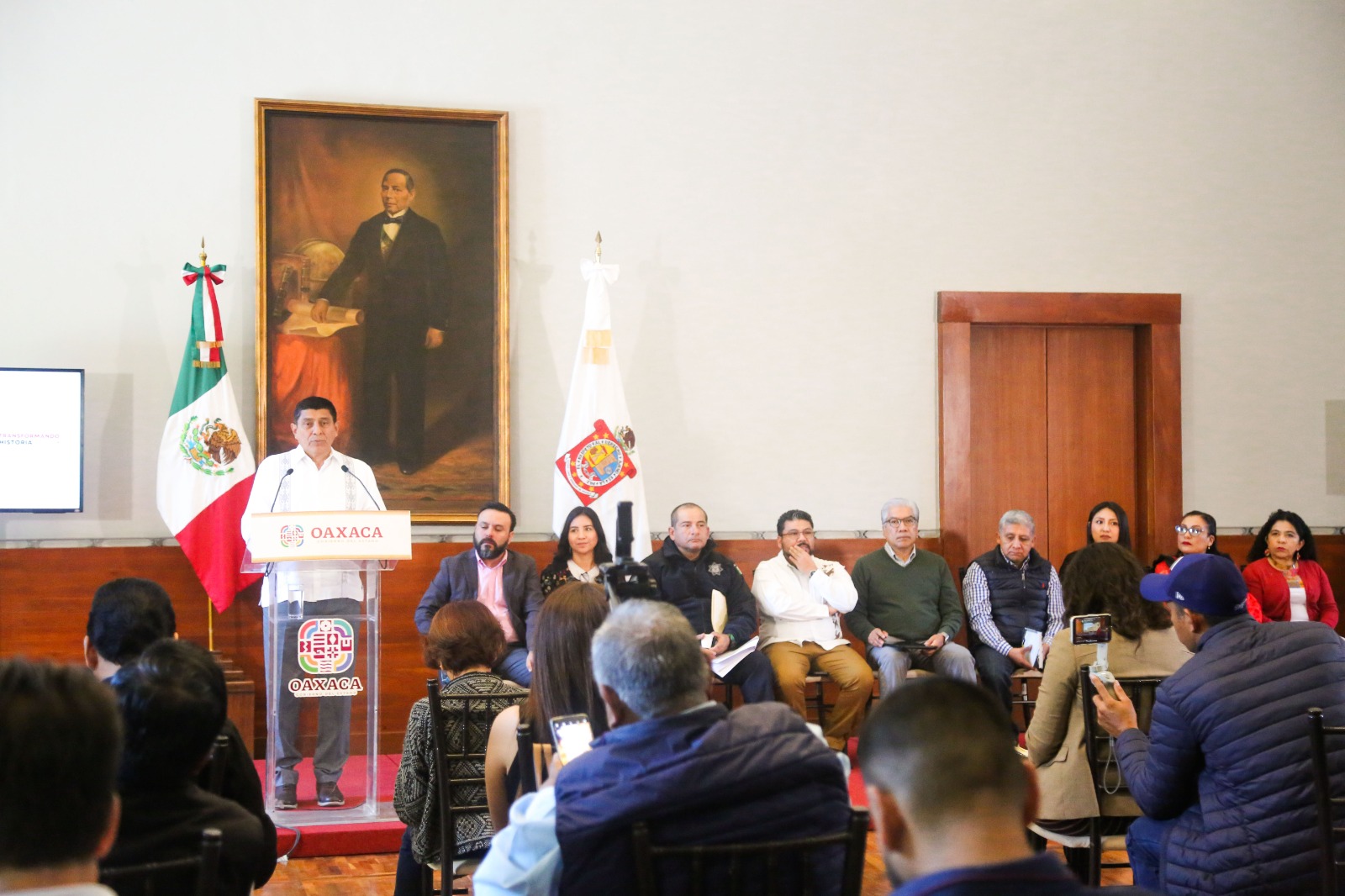 Oaxaca de Juárez, Oax. 27 de febrero de 2023.- El Gobernador de Oaxaca, Salomón Jara Cruz se pronunció a favor de la reforma al Instituto Nacional Electoral (INE), para fortalecer la verdadera democracia y devolverle al pueblo el poder para determinar su destino.