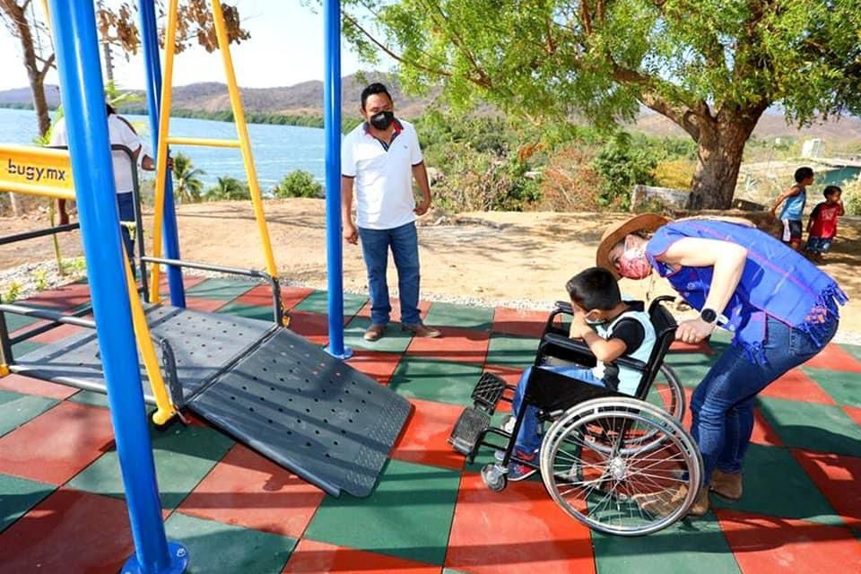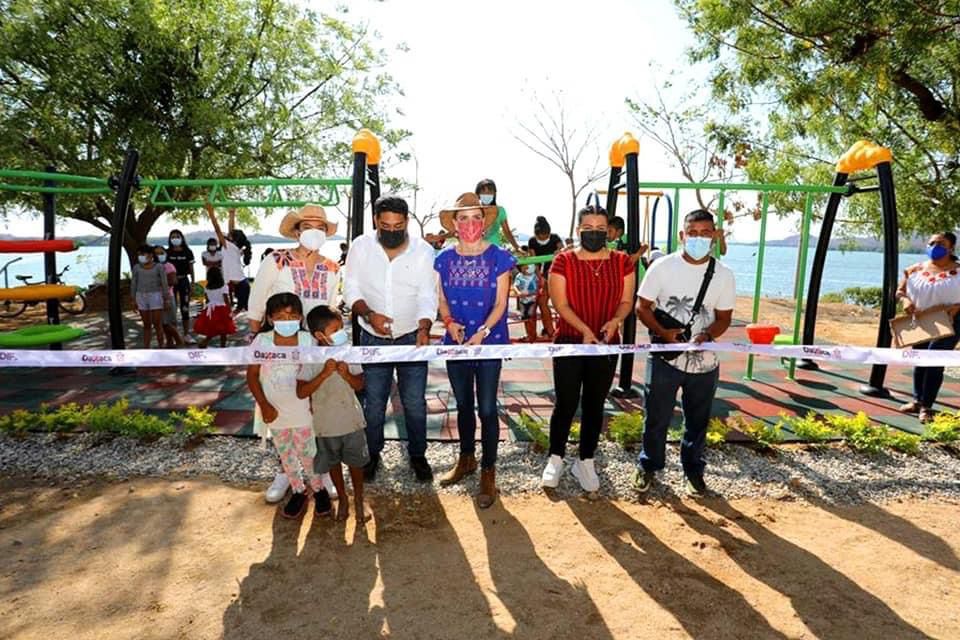 Es por ello que, en compañía del director general del Sistema Estatal DIF Oaxaca, Christian Holm Rodríguez y autoridades municipales, Ivette Morán de Murat entregó un parque incluyente en la agencia municipal del Zapotalito, en la Costa Oaxaqueña.