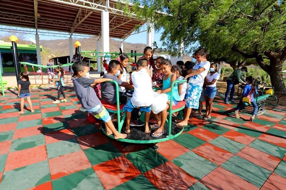 El Zapotalito, Villa de Tututepec, Oax. 9 de agosto de 2022.- Desde el día uno de la administración del Gobernador, Alejandro Murat Hinojosa, se ha marcada una pauta: el rescate de espacios públicos para su equipamiento y utilización como parques incluyentes en beneficio de la niñez oaxaqueña.