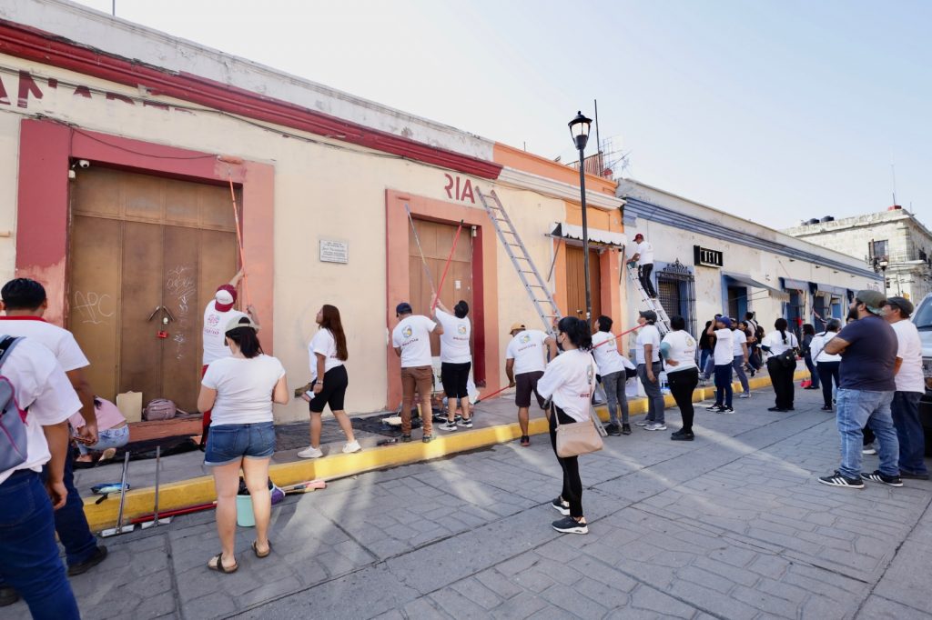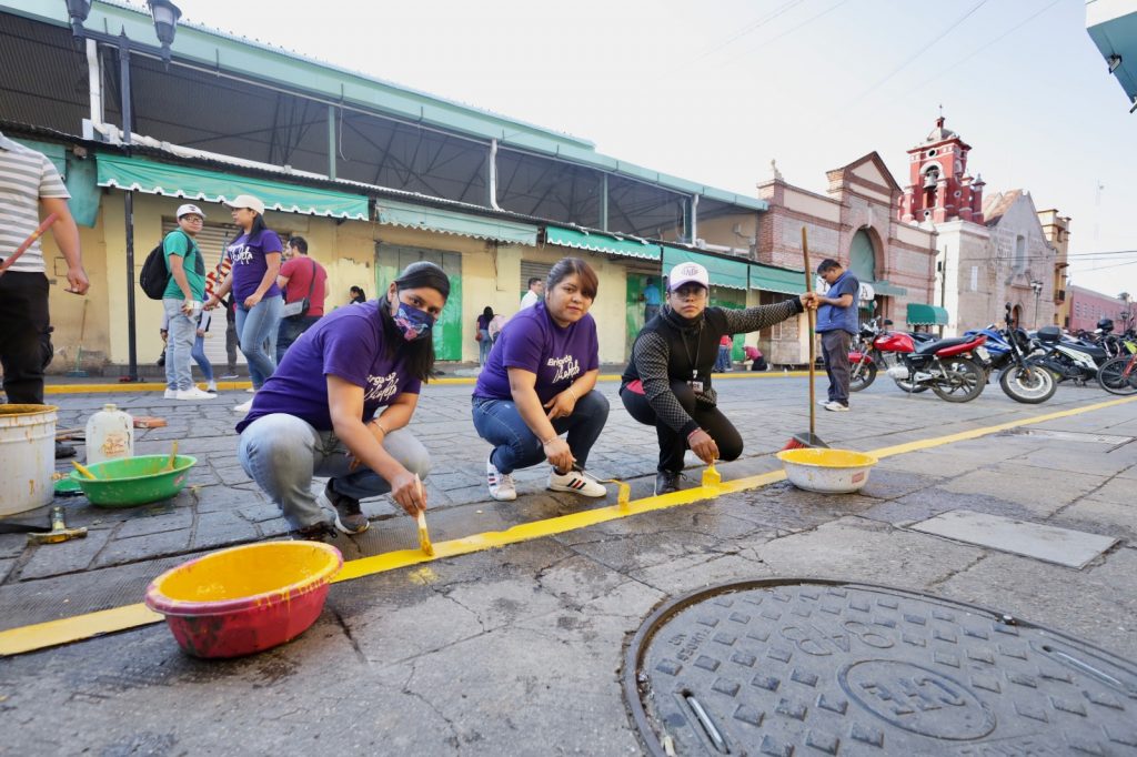 En esta ocasión quienes participaron en dicha actividad barrieron y limpiaron las banquetas, pintaron las guarniciones, pasos peatonales y ocho fachadas ubicadas sobre la calle 20 de Noviembre, desde Ignacio Aldama hasta Miguel Hidalgo, de la colonia Centro de esta ciudad capitalina.