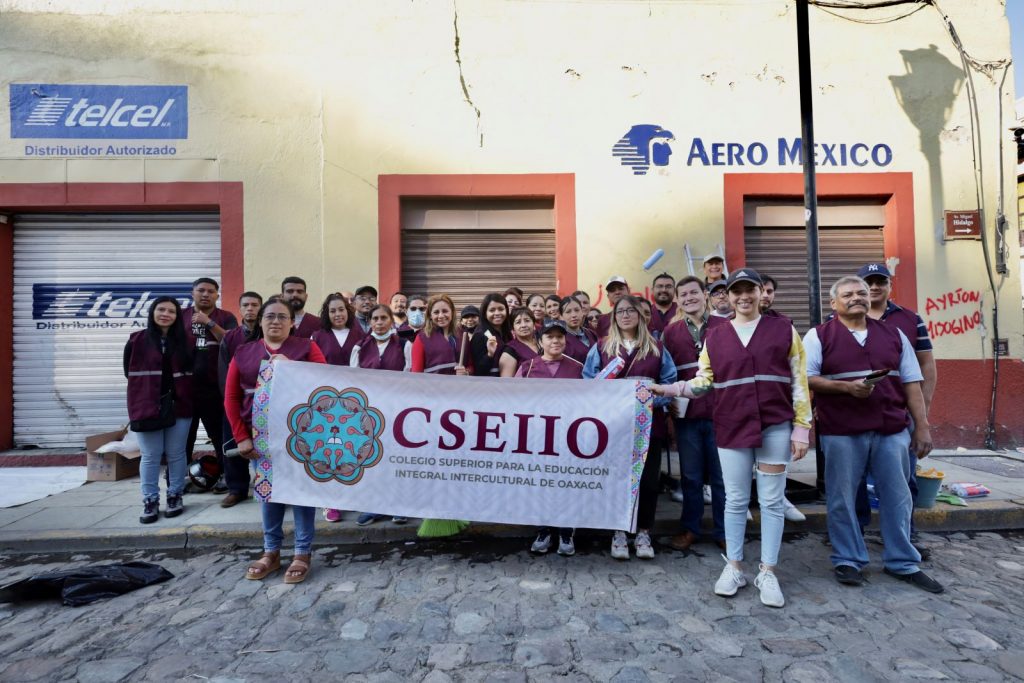 Funcionariado del Instituto de Estudios de Bachillerato de Oaxaca (IEBO), Coordinación de Atención a Derechos Humanos (CADH), Vivienda Bienestar, Colegio Superior para la Educación Integral Intercultural de Oaxaca (CSEIIO) y de la Sebienti sumaron esfuerzos con personal del municipio de Oaxaca de Juárez y del Comercio Establecido para realizar las acciones de limpieza.