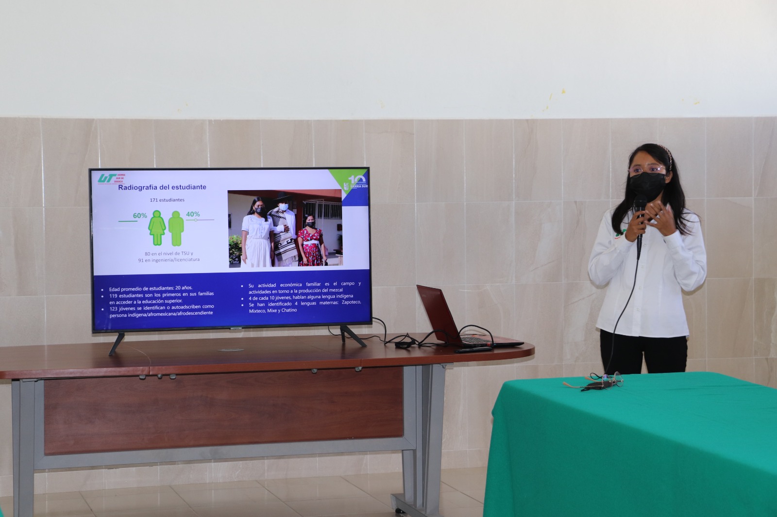 Durante la reunión en la que participaron empresarios y empresarias productoras de mezcal de la región de la Sierra Sur, se realizó la presentación de los programas académicos que integran el modelo educativo de esta casa de estudios.