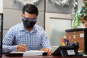 Tanto en el trabajo, como en el ámbito personal, es responsable con sus medidas sanitarias ante la pandemia, se cuida y cuida a la gente que lo rodea, pues reconoce que lo más importante e invaluable es la salud.