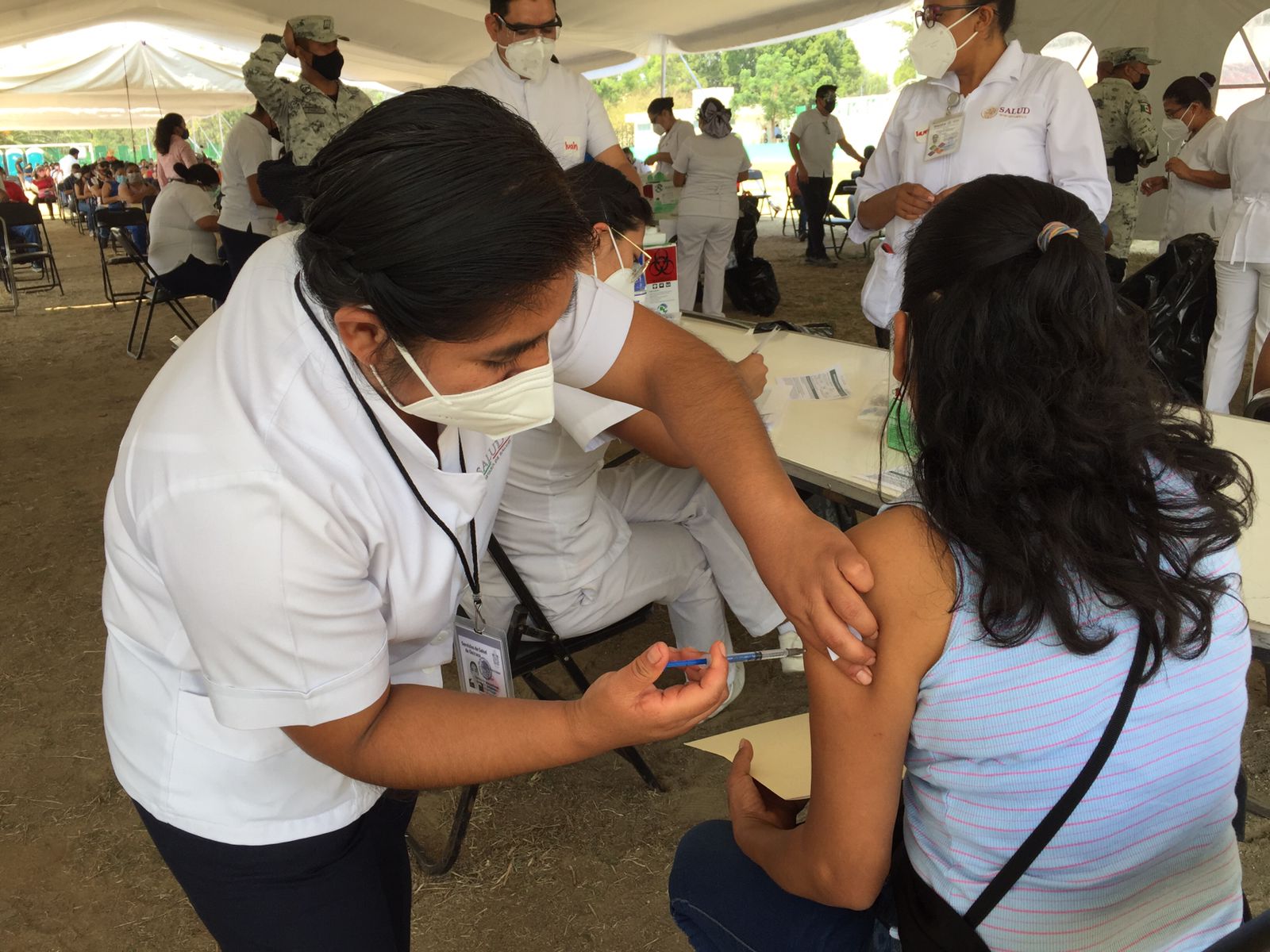 En calma, orden y tiempos reducidos de espera se desarrolla vacunación al personal educativo de Oaxaca