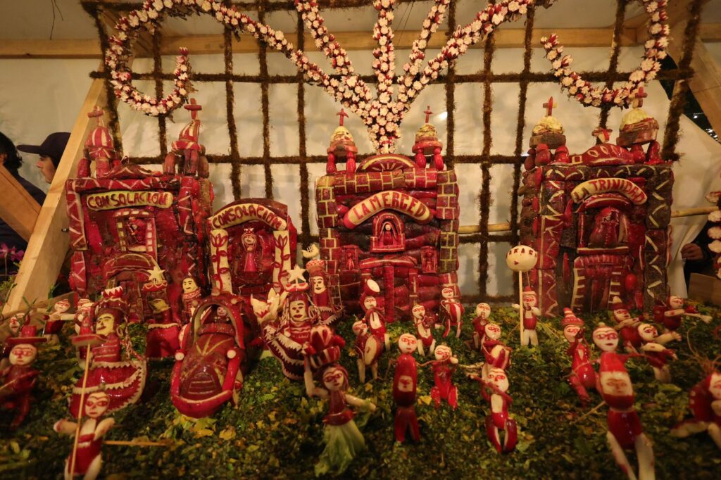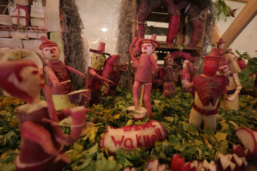 Oaxaca de Juárez, Oax. 23 de diciembre de 2024.- Con un ambiente festivo, lleno de tradición y del icónico color rojo de los tubérculos, se realizó la edición 127 de la Noche de Rábanos en la capital oaxaqueña, que es una muestra del talento y dedicación de decenas de personas horticultoras y artistas, que con sus manos creativas dan vida a las raíces, el totomoxtle y la flor inmortal.