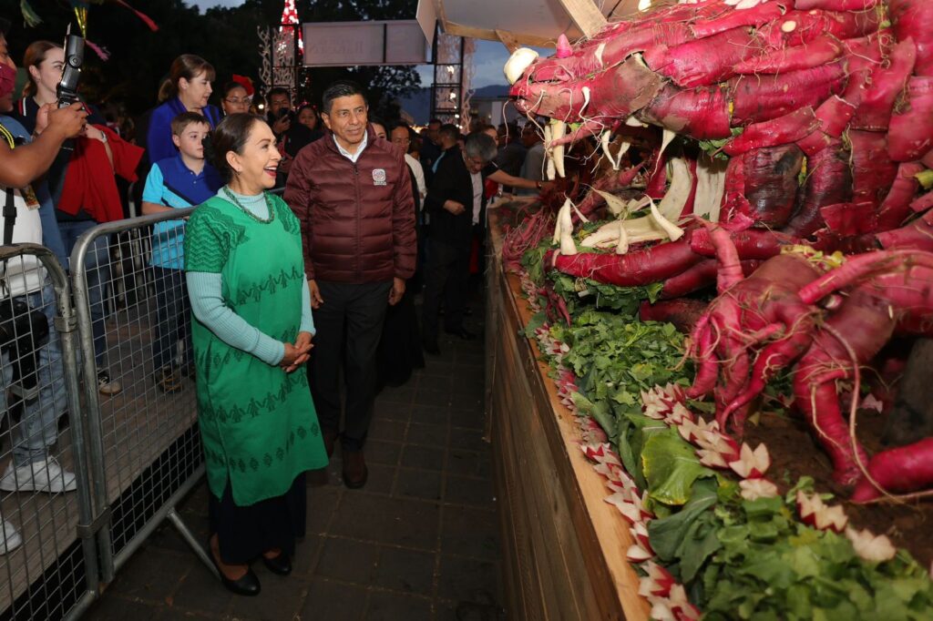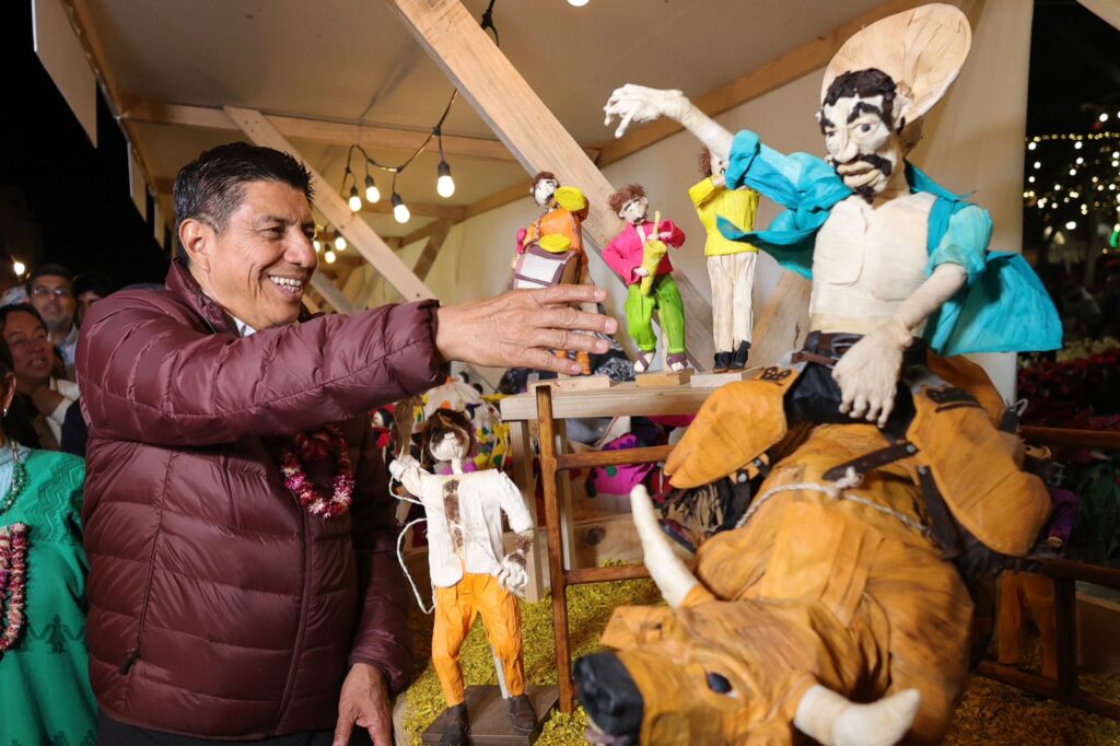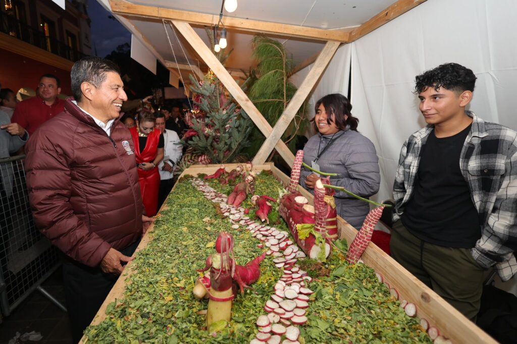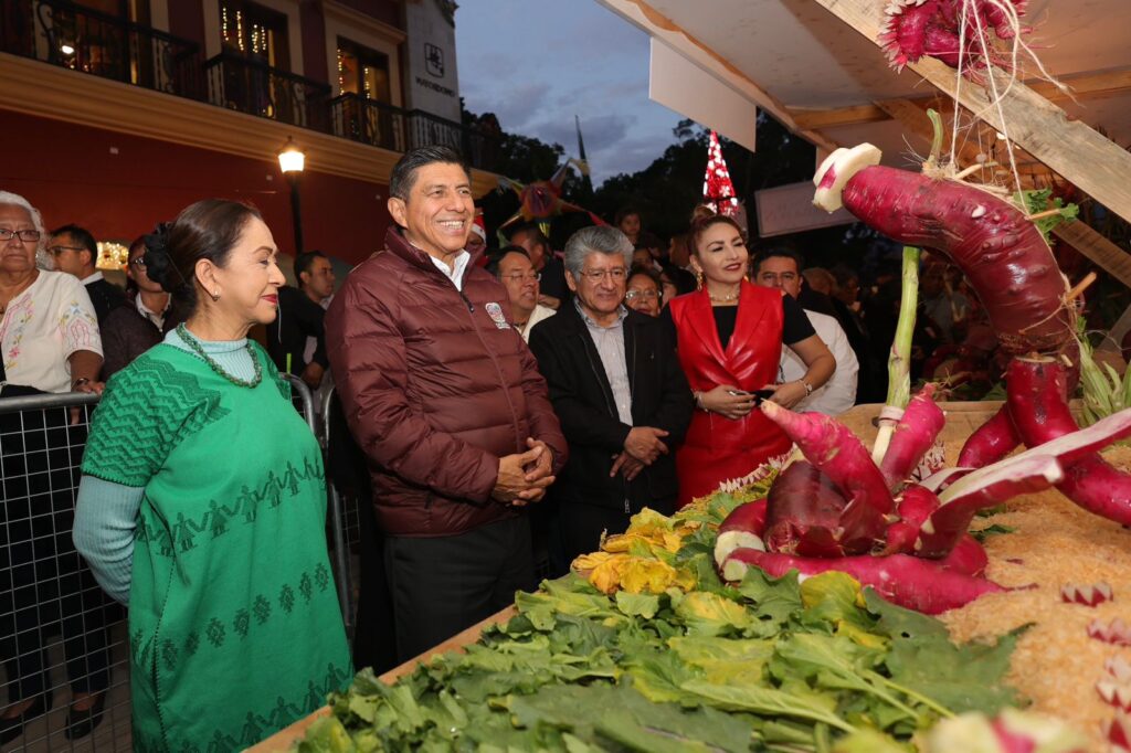 En este contexto repleto de impresionantes y creativas figuras, el Gobernador Salomón Jara Cruz, en compañía de la Presidenta Honoraria del Sistema para el Desarrollo Integral de la Familia (DIF) Oaxaca, Irma Bolaños Quijano, encabezó un recorrido por los stands que albergaron estas obras de arte, como cada 23 de diciembre.