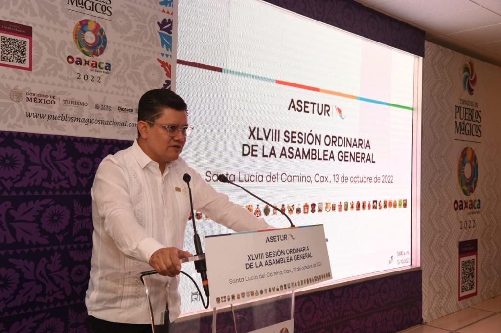 Santa Lucía del Camino, Oaxaca.; a 13 de octubre del 2022.- En la Cuadragésima Octava Sesión Ordinaria de la Asamblea General de la Unión de Secretarios de Turismo de México, A. C. (ASETUR), se renovó la Mesa Directiva para el ciclo 2022 – 2023, al dar por concluída la gestión de Juan Carlos Rivera Castellanos, secretario de Turismo del Estado de Oaxaca, quien estuvo a cargo de la presidencia por dos periodos consecutivos a petición de las y los integrantes de la asociación.