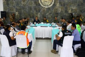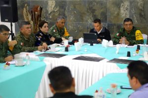 Santa María Huatulco, Oax., 1 de junio de 2022.- El gobernador Alejandro Murat Hinojosa y el secretario de la Defensa Nacional (Sedena), general Luis Cresencio Sandoval, encabezaron la quinta reunión de la sesión permanente del Consejo Estatal de Protección Civil, en donde informaron la llegada de más de 8 mil despensas con víveres para las familias damnificadas por el paso del huracán “Ágatha”, las cuales se distribuirán con la ayuda de 2 mil 864 elementos de la Sedena, Secretaría de Marina (Semar) y Guardia Nacional (GN).
