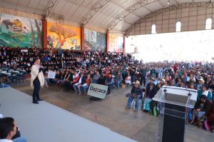«Las visitas del gobernador deben servir para dar resultados, para trabajar en equipo, para cumplir las necesidades que tiene nuestro pueblo, nuestra gente, para eso necesitamos como aliados a las y los presidentes municipales», expresó el Jefe del Poder Ejecutivo, frente a decenas de familias y estudiantes que llegaron a la explanada municipal de este lugar.