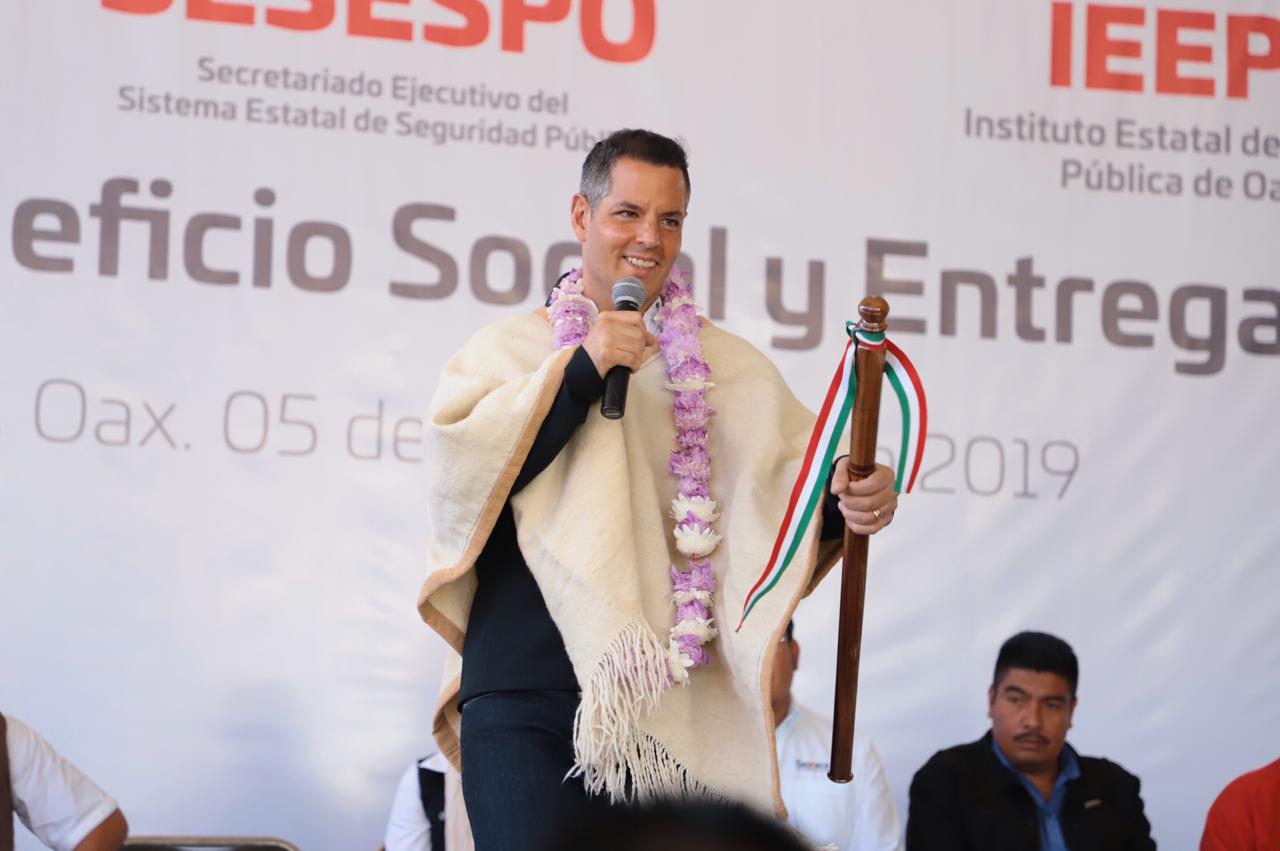 En el acto, el Mandatario Estatal también entregó 16 uniformes a la Policía Municipal y anunció que adicional a esto, en posteriores días pedirá al Secretariado Ejecutivo del Sistema Estatal de Seguridad Pública de Oaxaca (SESESPO) entregue a las autoridades municipales una patrulla. Alejandro Murat también otorgó de manera simbólica cobijas a las personas de la tercera edad, de un total de 300 que dará el DIF en este lugar.