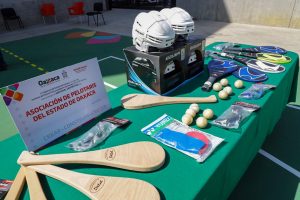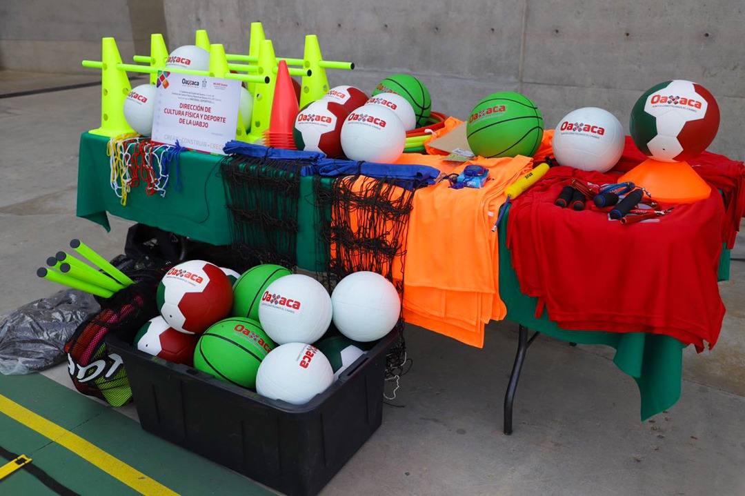 La entrega incluyó balones medicinales, tablas de surf, tablas para frontón, apoyo para suplementos nutrimentales, casacas, cronómetros, gorras, playeras, silbatos, juegos de vallas y cuerdas, que en conjunto servirán para desarrollar las habilidades técnicas de las y los deportistas.