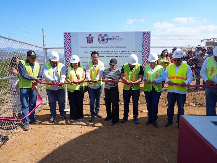 San Pablo Huitzo, Oaxaca. 17 de febrero de 2025.- Para fortalecer los trabajos de infraestructura hídrica, el Gobierno de Oaxaca a través de la Comisión Estatal del Agua para el Bienestar (Ceabien), entregó en este municipio la construcción de un tanque de distribución de agua potable, con capacidad de 100 metros cúbicos, para ampliar el suministro del vital líquido en beneficio de más de seis mil habitantes.