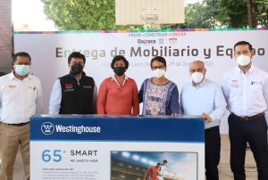 En un evento realizado en el Barrio de Santa Cruz, autoridades municipales y comités de padres y madres de familia recibieron el mobiliario y equipo consistentes en computadoras, impresoras, mesas, sillas, pizarrones, bandas de guerra, equipos de sonido, archiveros, material de aseo, deportivo y de oficina, con una inversión total de más de un millón de pesos, con lo que asciende a poco más de 269 millones de pesos lo entregado en la actual administración estatal.