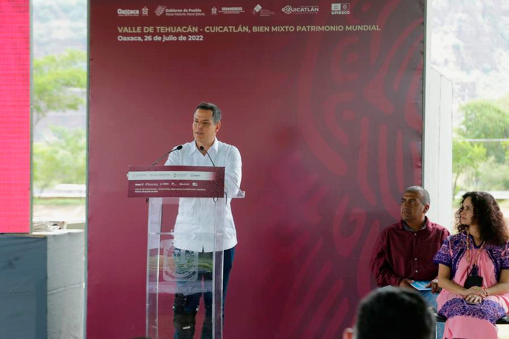 El gobernador de Oaxaca, Alejandro Murat Hinojosa, añadió: «Así como en estos días celebramos la Guelaguetza, estamos de fiesta también porque tenemos el privilegio de colocar una nueva placa para sitios declarados Patrimonio Mundial de la Unesco en nuestro estado, para el valle de Tehuacán-Cuicatlán, como Bien Mixto de Patrimonio Mundial; reflejo del mosaico natural y cultural de nuestra tierra, considerada como la esencia espiritual de México».