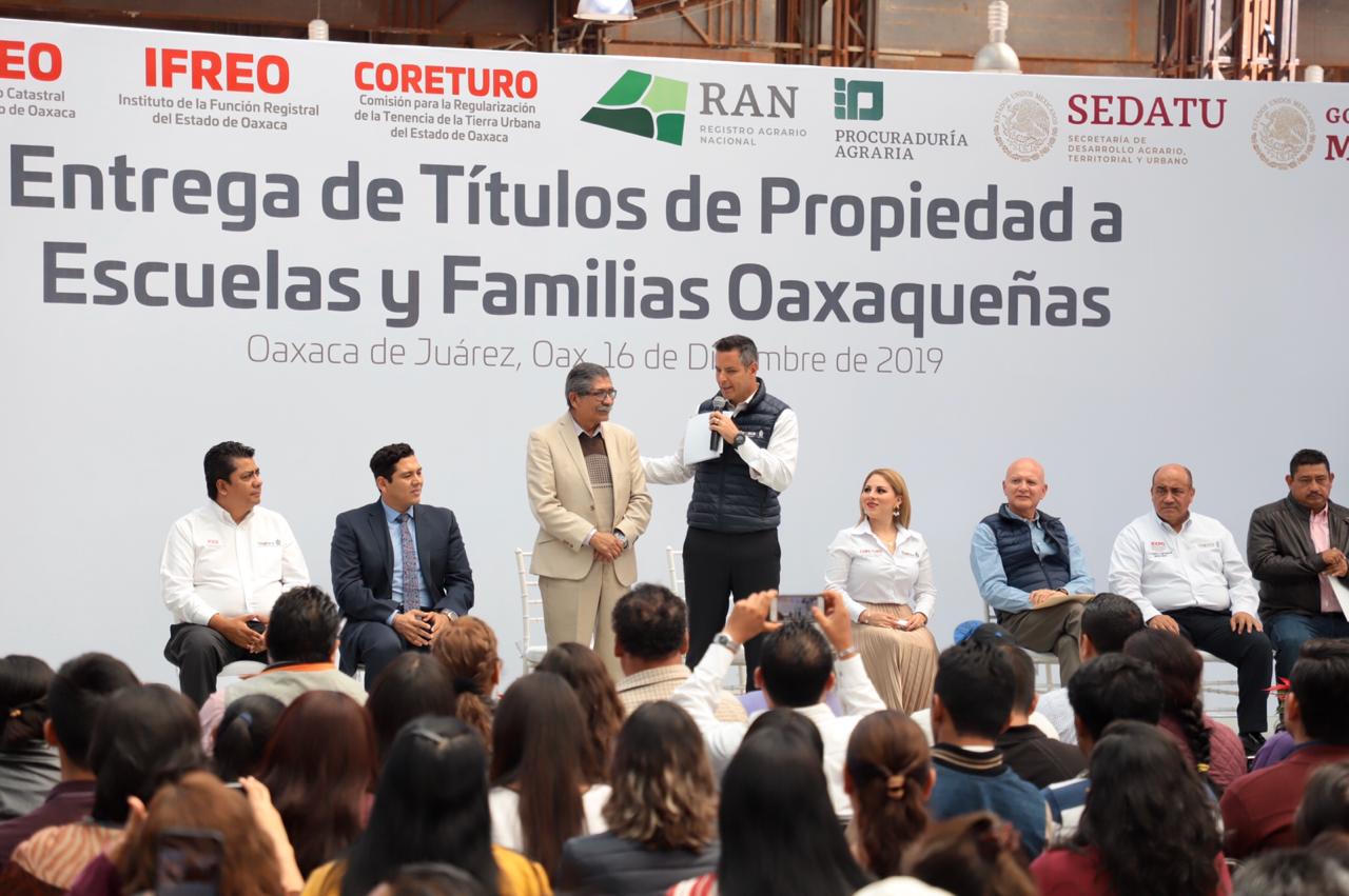 • Oaxaca destaca como la única entidad del país en otorgar títulos de propiedad de manera gratuita a favor de las familias oaxaqueñas