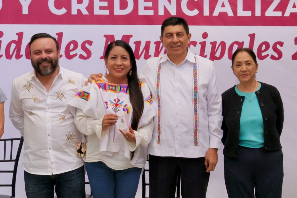 Junto a la Presidenta Honoraria del Sistema DIF Estatal, Irma Bolaños Quijano, y con la presencia de autoridades de 217 municipios, de los cuales 152 se rigen por Partidos Políticos y 65 por Sistemas Normativos Indígenas, el Mandatario estatal entregó simbólicamente 9 acreditaciones y destacó que este proceso refuerza los pilares de transformación en la entidad.