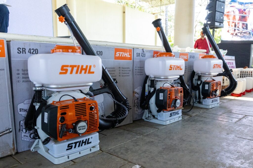 También, con una inversión de 1 millón 190 mil pesos, 100 productores de papaya reciben el apoyo del programa Sanidad e Inocuidad con mochilas aspersoras motorizadas, destinadas a auxiliar en la prevención y control de plagas, para seguir siendo el primer lugar en el ranking nacional de producción y calidad.