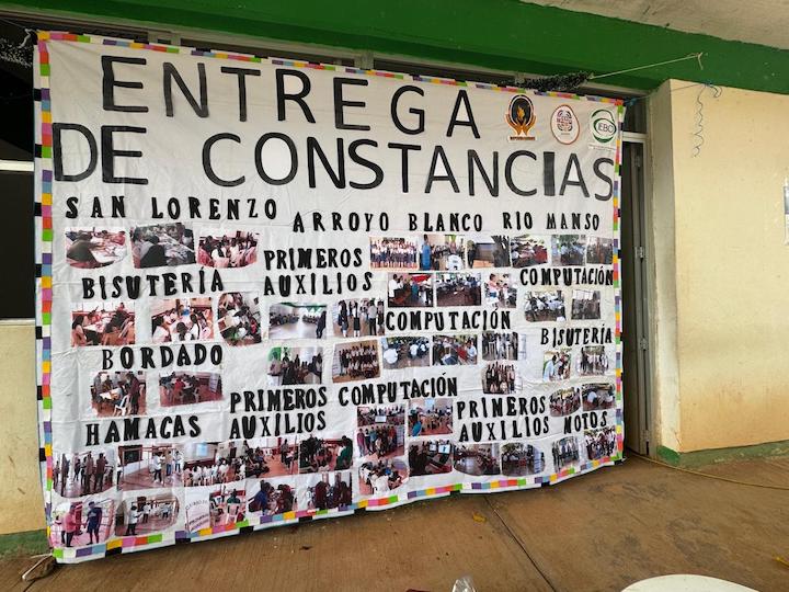 San Juan Lalana, Oax. 11 de diciembre de 2025.- El Instituto de Capacitación y Productividad para el Trabajo (Icapet) entregó 200 constancias a jóvenes del Instituto de Estudios de Bachillerato del Estado de Oaxaca (IEBO) ubicados en San Lorenzo Lalana, Arroyo Blanco y San José Río Manso, de este municipio; que concluyeron cursos de bisutería, elaboración de hamacas, bordado, primeros auxilios y computación.