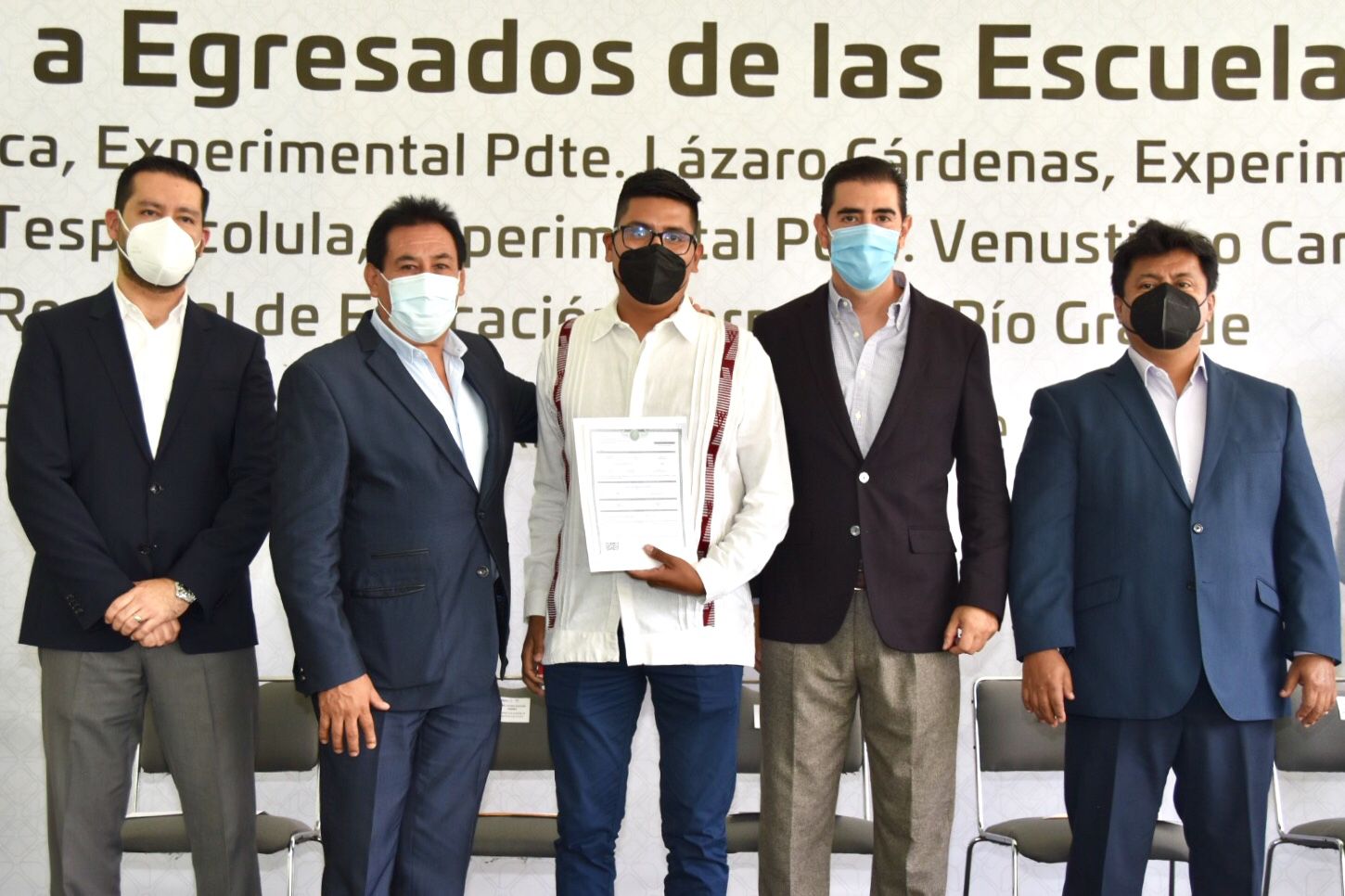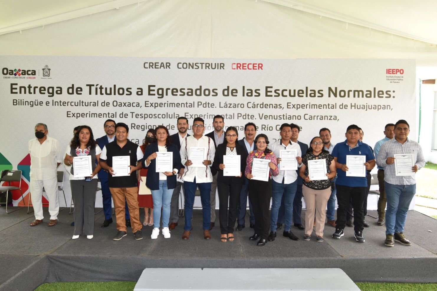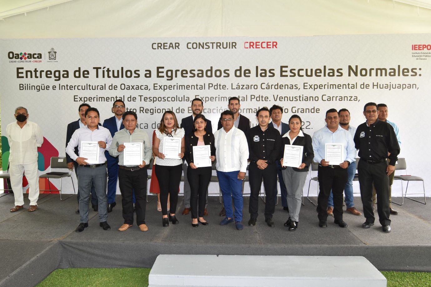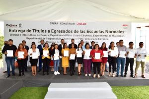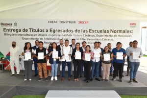Los 441 títulos electrónicos corresponden a egresadas y egresados de la Universidad Pedagógica Nacional (UPN) Unidad 202 Tuxtepec, la Escuela Normal Bilingüe e Intercultural de Oaxaca, Escuela Normal Experimental “Presidente Lázaro Cárdenas”, Escuela Normal Experimental Huajuapan y Escuela Normal Experimental de Teposcolula.