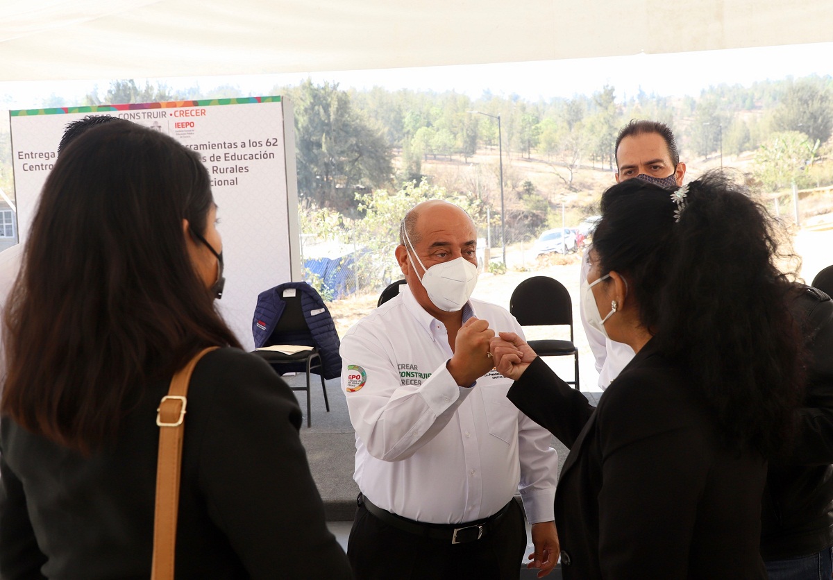 Santa María Atzompa, Oax. 10 de marzo de 2021.- En apoyo a la labor que realizan 62 Centros de Enseñanza Ocupacional y las Misiones Culturales Rurales que atienden a siete mil 906 personas adultas de comunidades rurales y semiurbanas con educación y capacitación, a nombre del gobernador Alejandro Murat Hinojosa, el director general del Instituto Estatal de Educación Pública de Oaxaca (IEEPO), Francisco Ángel Villarreal, realizó la entrega de herramientas y equipo nuevo.