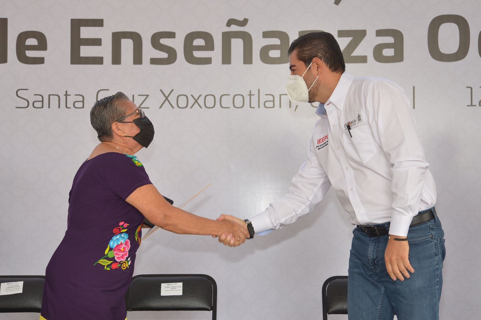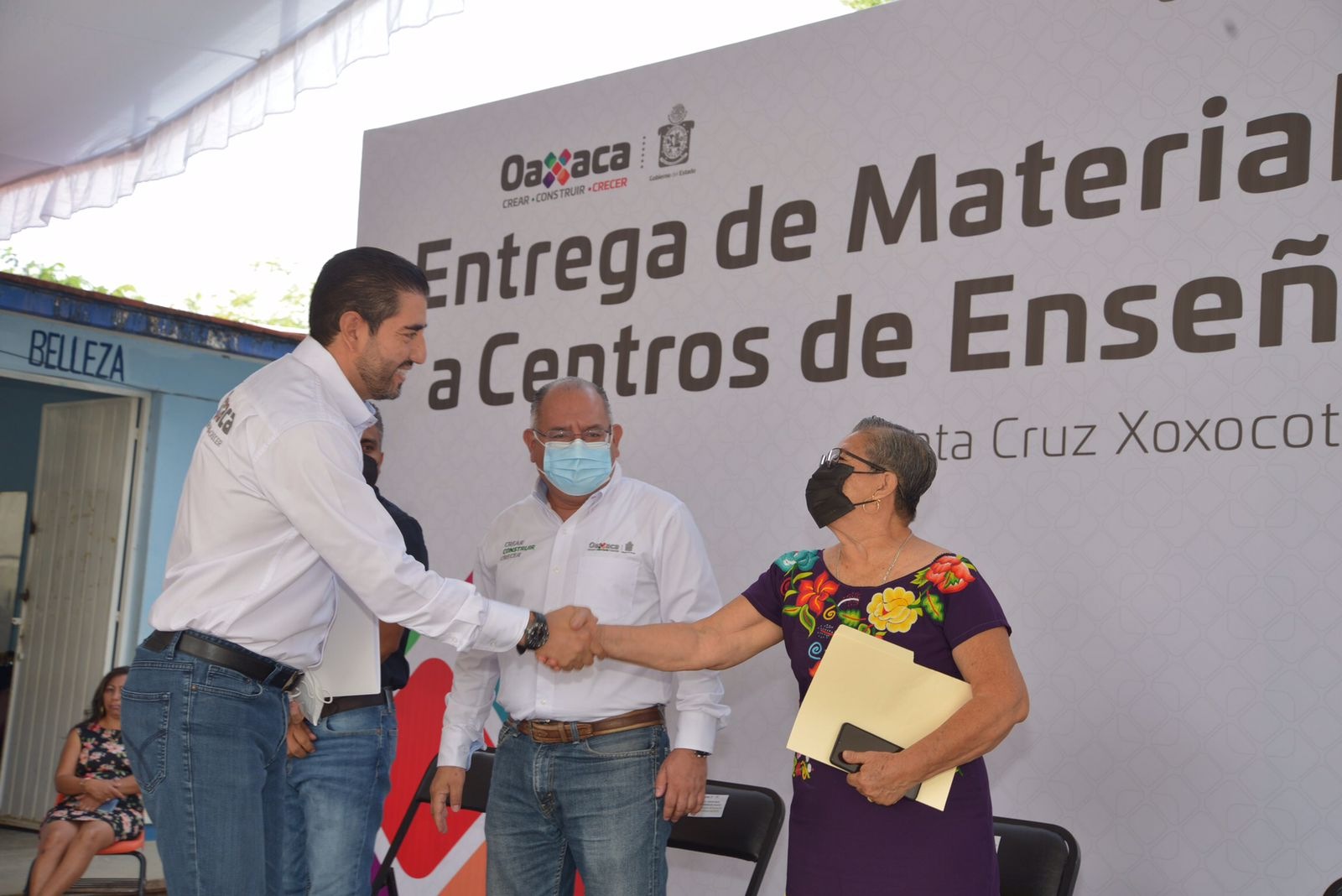 Acompañado del auxiliar de la Secretaría de Trabajos y Conflictos de los niveles especiales de la Sección XXII del SNTE, Manuel de Jesús López Ruiz y en presencia de supervisores, directoras, directores, alumnas y alumnos de los Centros de Enseñanza Ocupacional -una de las tres modalidades de educación para adultos que dependen del IEEPO-, reconoció la importante misión de estos espacios al brindar capacitación para el trabajo y formar en una actividad productiva u oficio calificado a la población de 15 años de edad o más.