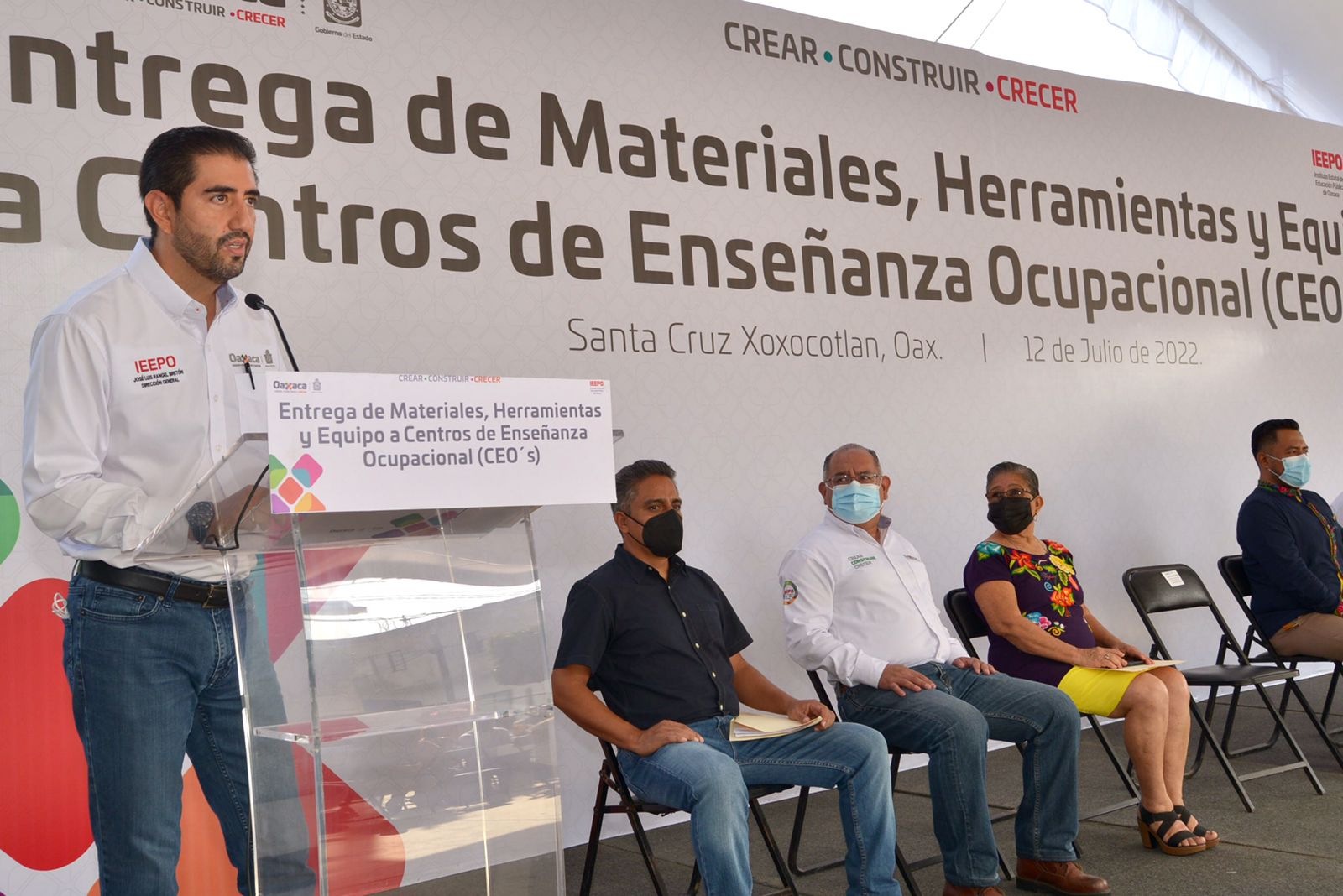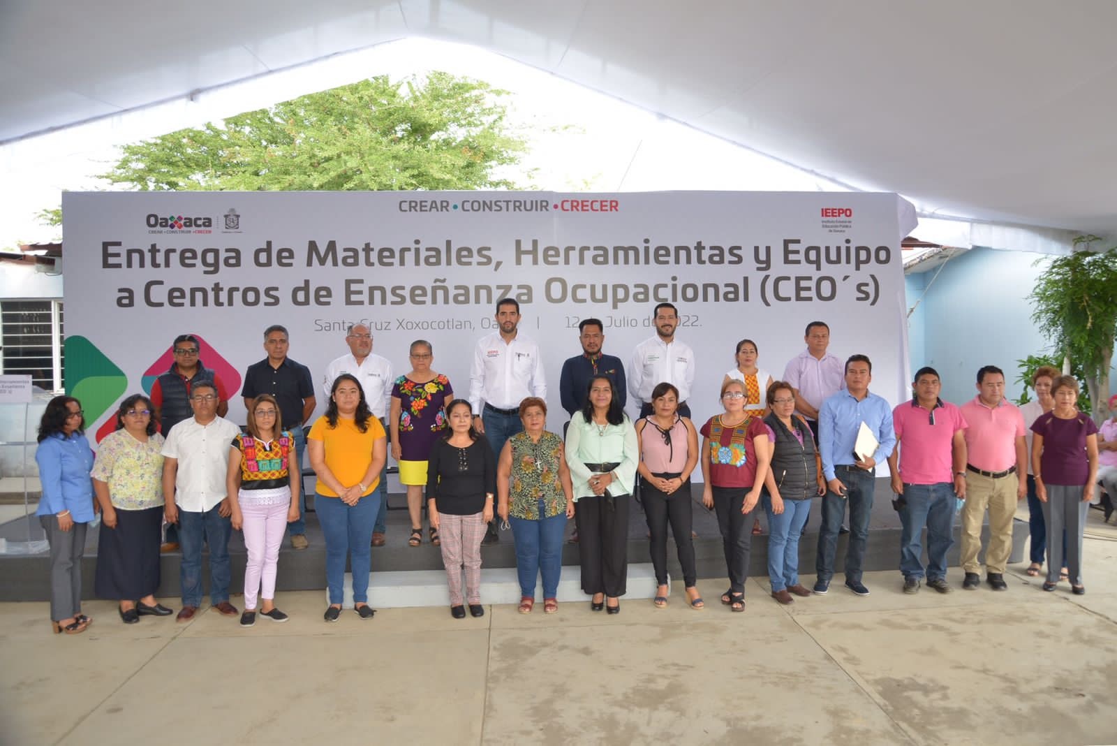 Santa Cruz Xoxocotlán, Oax. 12 de julio de 2022.- A nombre del gobernador Alejandro Murat Hinojosa, el encargado de despacho del Instituto Estatal de Educación Pública de Oaxaca (IEEPO), José Luis Rangel entregó materiales, herramientas y equipo de trabajo a 24 Centros de Enseñanza Ocupacional (CEO´s) y tres supervisiones, en beneficio de la comunidad educativa.