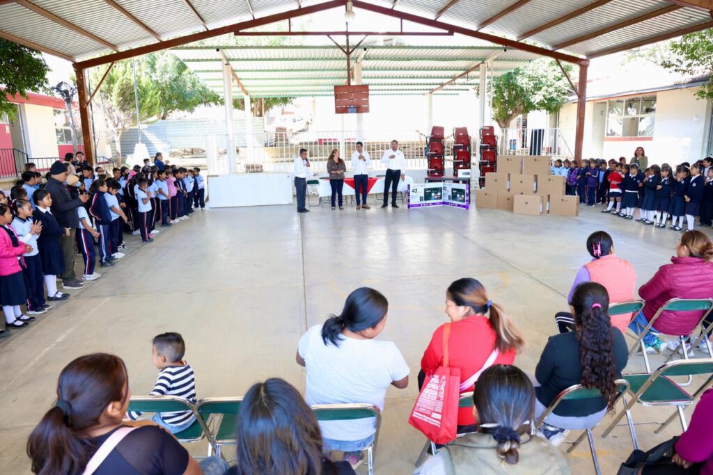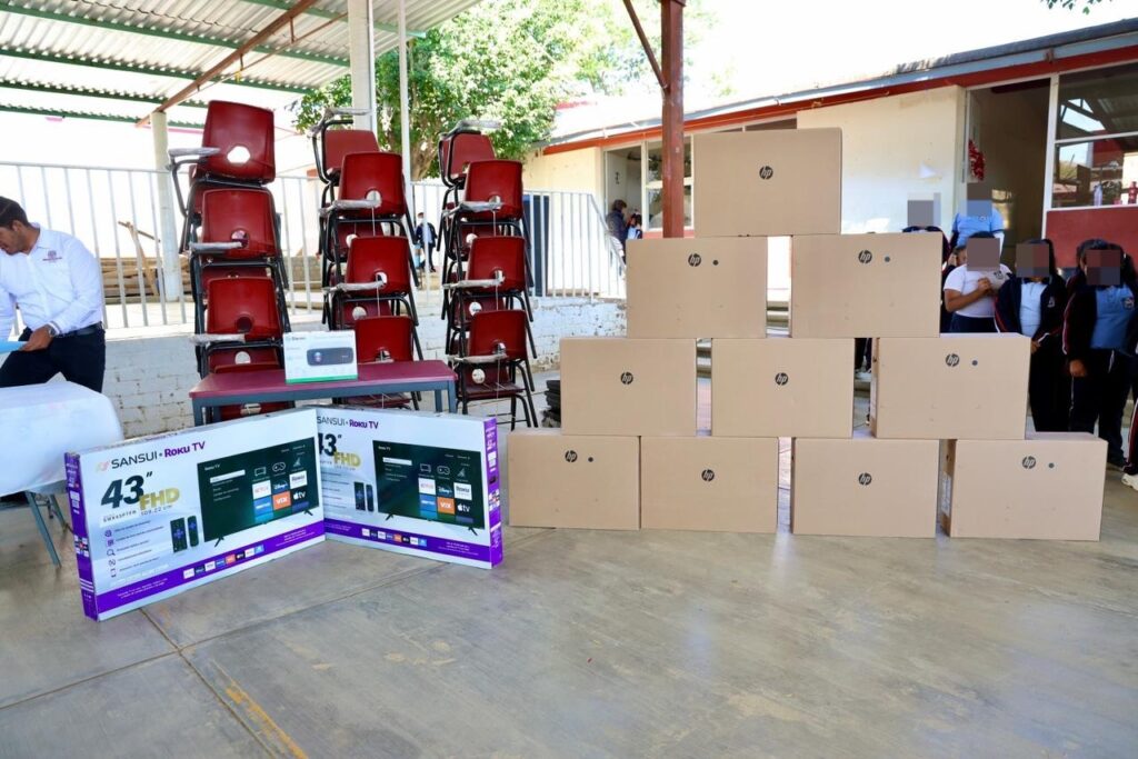 • Dentro de los recursos otorgados destacan 10 computadoras, dos pantallas Smart Tv y un video proyector; así como un lote de mesas y sillas