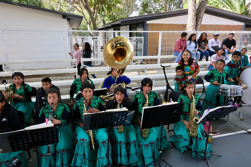 Oaxaca de Juárez, Oax. 22 de noviembre de 2025.– La Presidenta Honoraria del Sistema para el Desarrollo Integral de la Familia (DIF) Oaxaca, Irma Bolaños Quijano proporcionó 54 instrumentos musicales, a dos bandas filarmónicas infantiles, como parte del Programa Salud y Bienestar Comunitario.