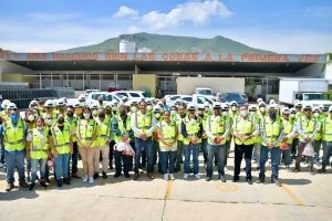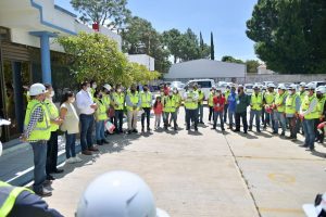 Con la presencia del responsable del área, Ángel Cervantes Madrid, Mariana Nassar hizo entrega de cascos, protectores para oídos, gafas, guantes y chalecos a decenas de trabajadoras y trabajadores, quienes brindan atención preventiva y correctiva a las instalaciones y equipos de Ciudad Administrativa, Ciudad Judicial, Palacio de Gobierno, entre otros espacios gubernamentales.