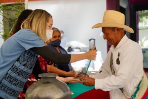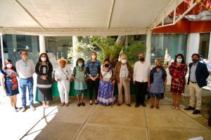 San Bartolo Coyotepec, Oax., 01 de diciembre de 2021.- Con el objetivo de reconocer la trayectoria, contribución y compromiso de artesanas y artesanos con trayectoria mayor a 40 años en la elaboración y producción de arte popular en sus diversas manifestaciones, la Secretaría de las Culturas y Artes de Oaxaca (Seculta) entregó cuatro medallas e igual número de reconocimientos a creadoras y creadores oaxaqueños.