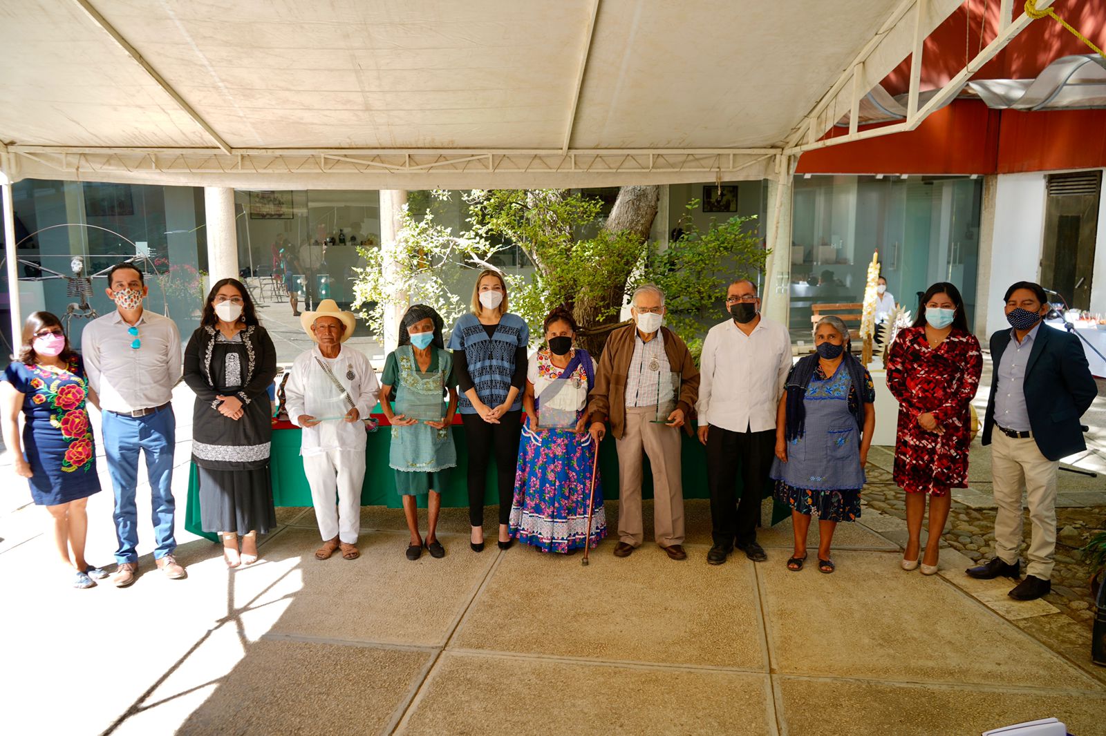 Teniendo como sede las instalaciones del Museo estatal de arte popular “Oaxaca”, Villacaña Quevedo reconoció la trayectoria de Anastasia Galán y Félix Salas Cruz por su extenso trabajo con barro negro, de Irene Rafaela Aguilar Alcántara por su trayectoria en el manejo del barro policromado y de Hermenegildo Contreras Cruz por su dedicación al arte expresado con totomoxtle, rábano y figuras de madera.