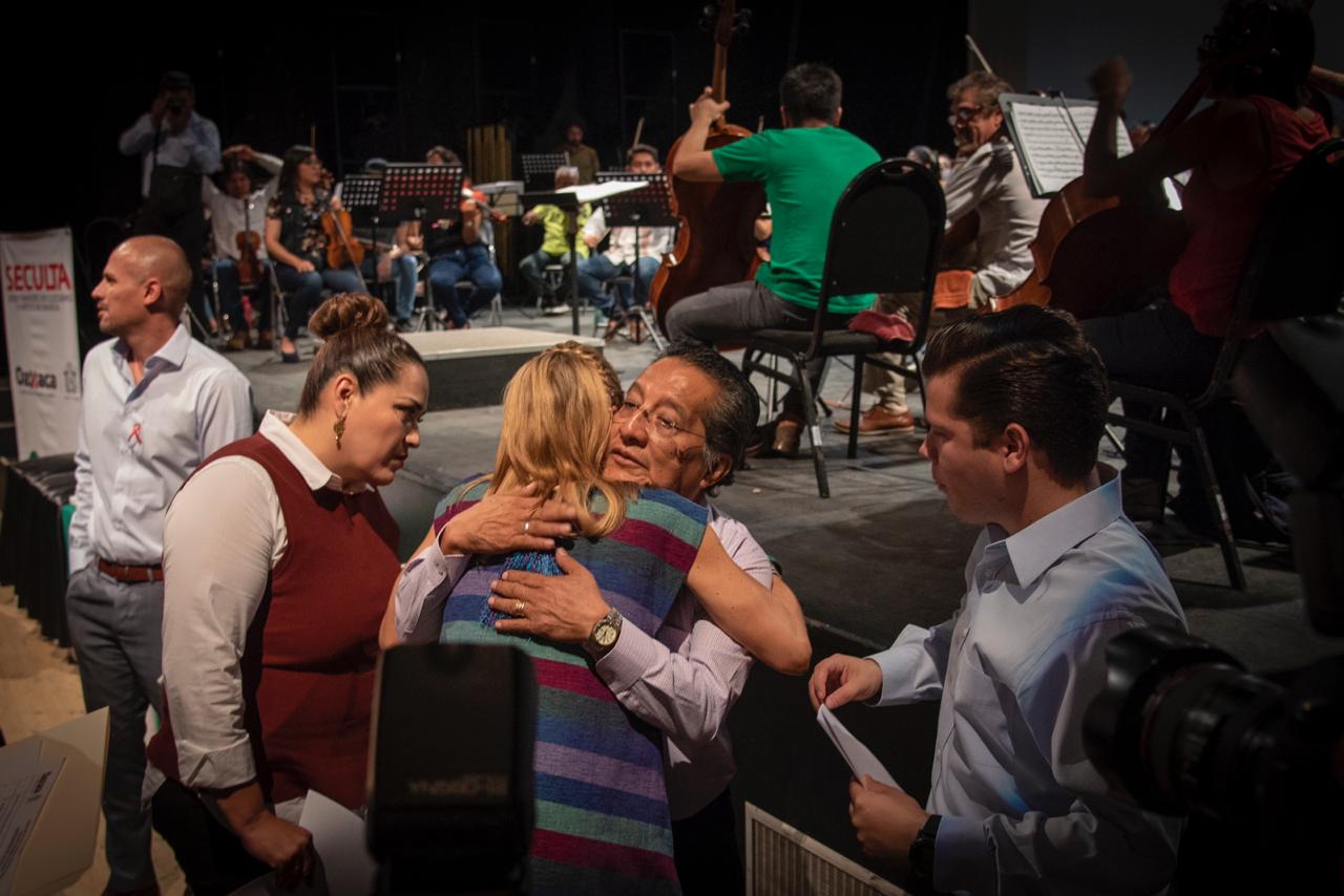 La entrega fue realizada en el Teatro Juárez, por la esposa del gobernador Alejandro Murat Hinojosa, Ivette Morán de Murat y por la titular de la Seculta, Adriana Aguilar Escobar.