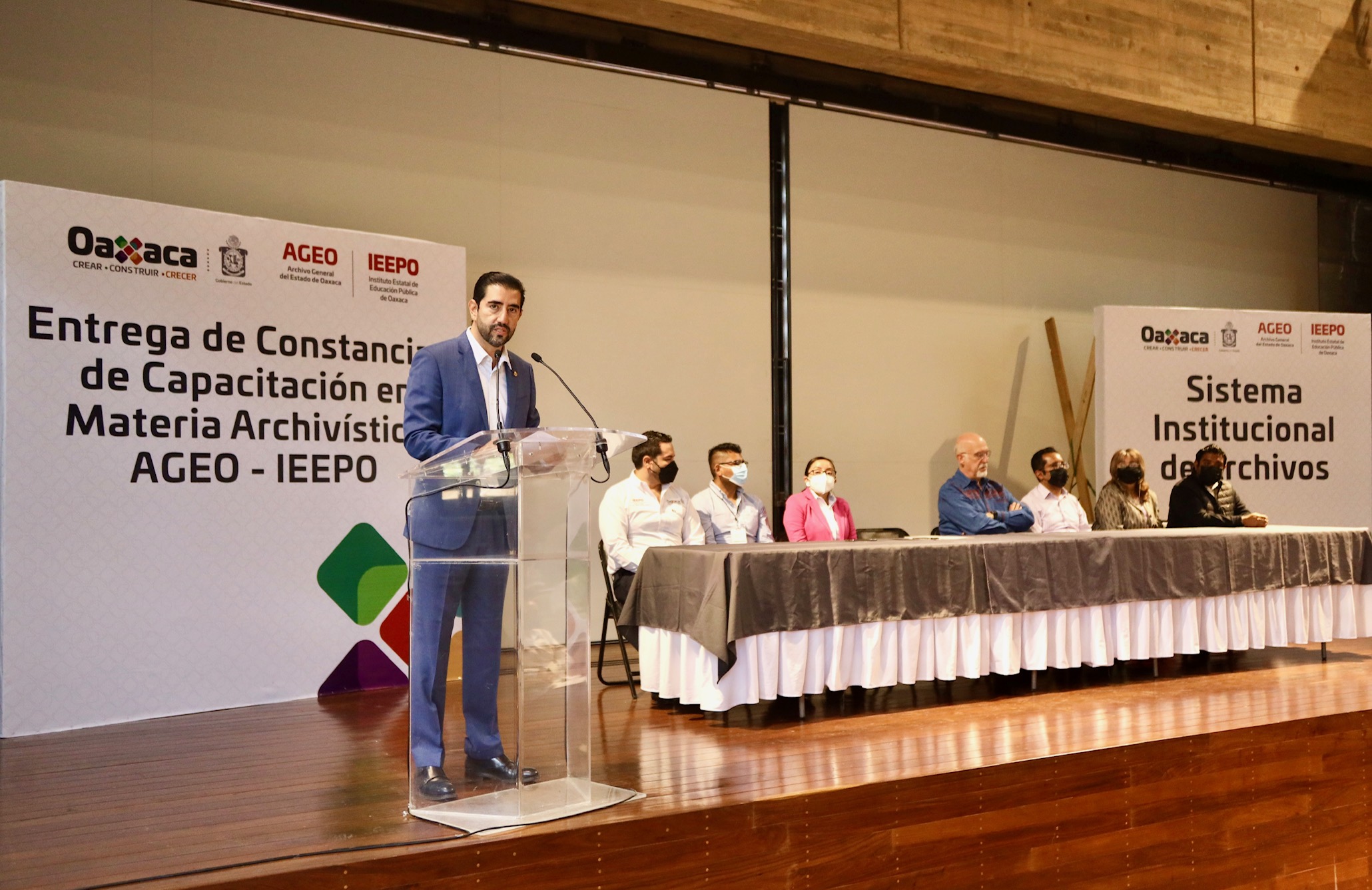En la ceremonia y en presencia del director general del AGEO, Jorge Álvarez Fuentes, el director general del IEEPO felicitó por este logro y por su colaboración y profesionalismo a los 32 responsables de archivo de trámite de las Unidades Administrativas del Instituto, a quienes convocó a implementar los mecanismos que permitan la correcta gestión de los archivos y hacer más eficientes los servicios a las y los usuarios.