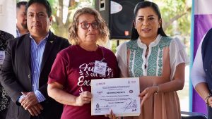 Oaxaca de Juárez., Oax. 12 de noviembre de 2022.- La secretaria de Salud, Virginia Sánchez Ríos, entregó 15 acreditaciones a integrantes del Grupo de Ayuda Mutua de Enfermedades Crónicas (GAM-EC) “Salud y Bienestar», adherido al Centro de Salud Urbano, del municipio de San Sebastián Tutla, por fomentar la adopción de estilos de vida saludables en personas con diversos padecimientos.