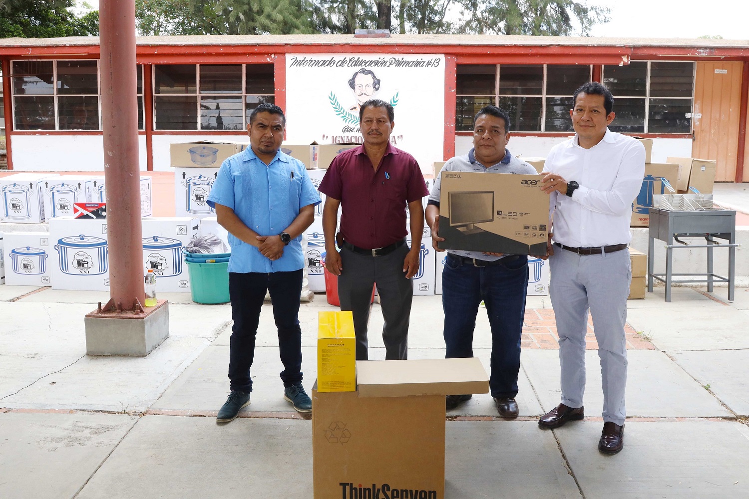 Entre los artículos recibidos por el personal directivo y padres de familia de este plantel escolar se destacan dos freidoras, ollas de aluminio, cubiertos, tazas, coladores y computadoras, entre otros.