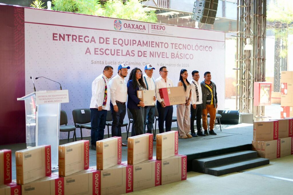 Oaxaca de Juárez, Oax. 4 de marzo de 2026.- Para fortalecer el aprendizaje y modernizar los entornos escolares, el Gobernador Salomón Jara Cruz entregó equipamiento tecnológico a 262 escuelas de educación básica en el municipio de Oaxaca de Juárez.