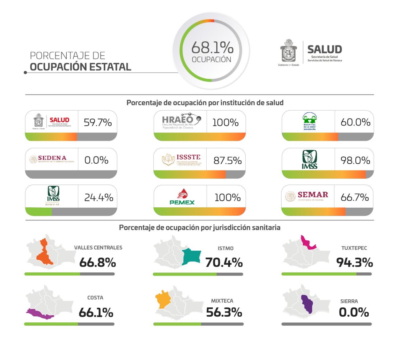 La tendencia de casos y hospitalizaciones continuará aumentando a un ritmo preocupante en Oaxaca, si la población no se suma a las medidas y protocolos sanitarios, todas las personas deben usar correctamente el cubrebocas, evitar salidas innecesarias, así como mantener la higiene de manos frecuentemente, para poder controlar la propagación del virus.