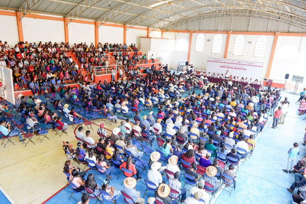 - En el municipio de San Pedro Sochiápam entrega 20 millones de pesos en diversos apoyos como parte de la Estrategia de Atención a Municipios Territorios Bienestar