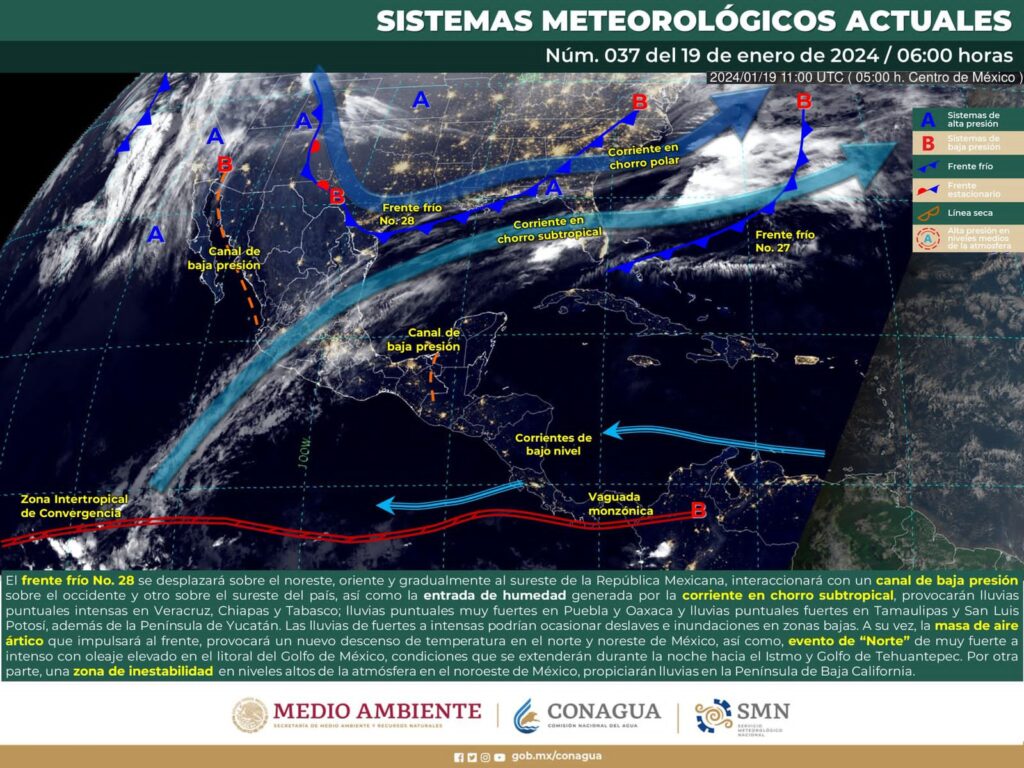 Lo anterior, de acuerdo con el pronóstico emitido por la Comisión Nacional del Agua (Conagua) que señala que un sistema de alta presión se posiciona al norte de la Península de Florida y extiende su influencia hasta la porción centro-sur del Golfo de México, induciendo viento del este y noreste con intensidades moderadas, además de ambiente fresco a frío en zonas altas y bajo potencial de lluvias.