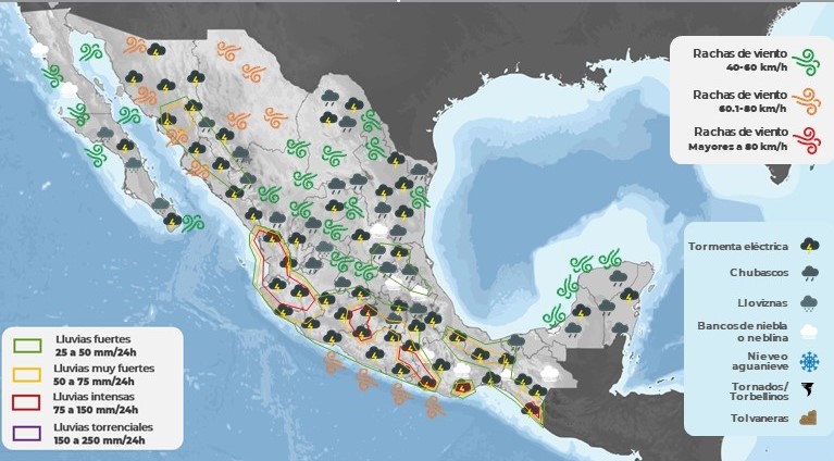 Sin embargo,  su circulación aportará humedad hacia el interior de gran parte del estado, manteniendo el temporal de lluvias de intensidad variable con mayores acumulados en zonas montañosas de la Sierra Sur, Mixteca y Cuenca del Papaloapan. Además de oleaje elevado, rachas de viento y mar picado a lo largo de la línea de costa.
