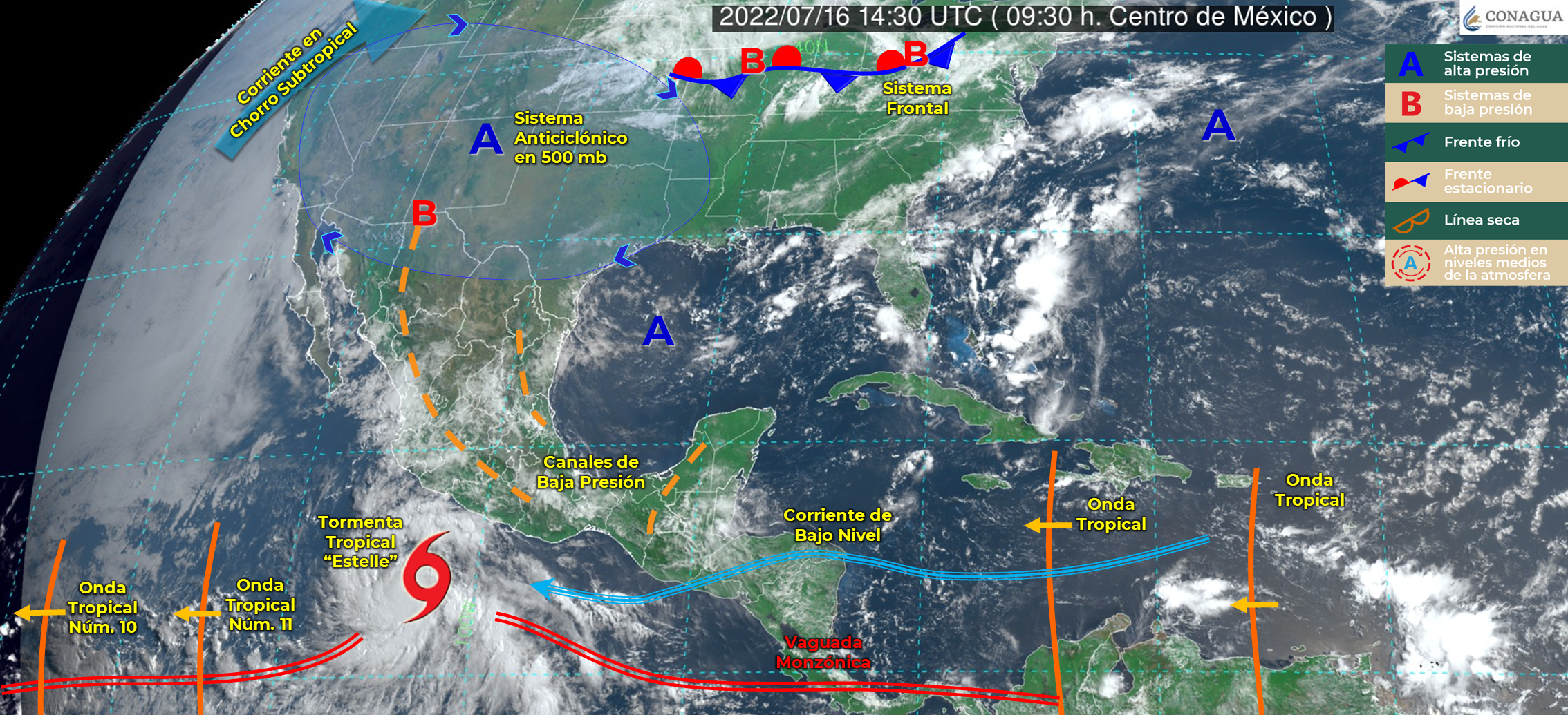 • La tormenta tropical “Estelle” continuará su trayecto al sur de las costas de Colima y Michoacán aportando humedad al interior del estado